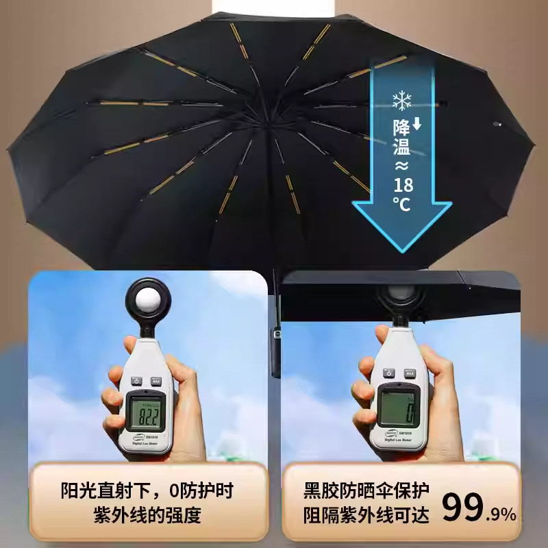 自动雨伞男女折叠太阳伞加大加固晴雨两用防晒防紫外线加厚遮阳伞