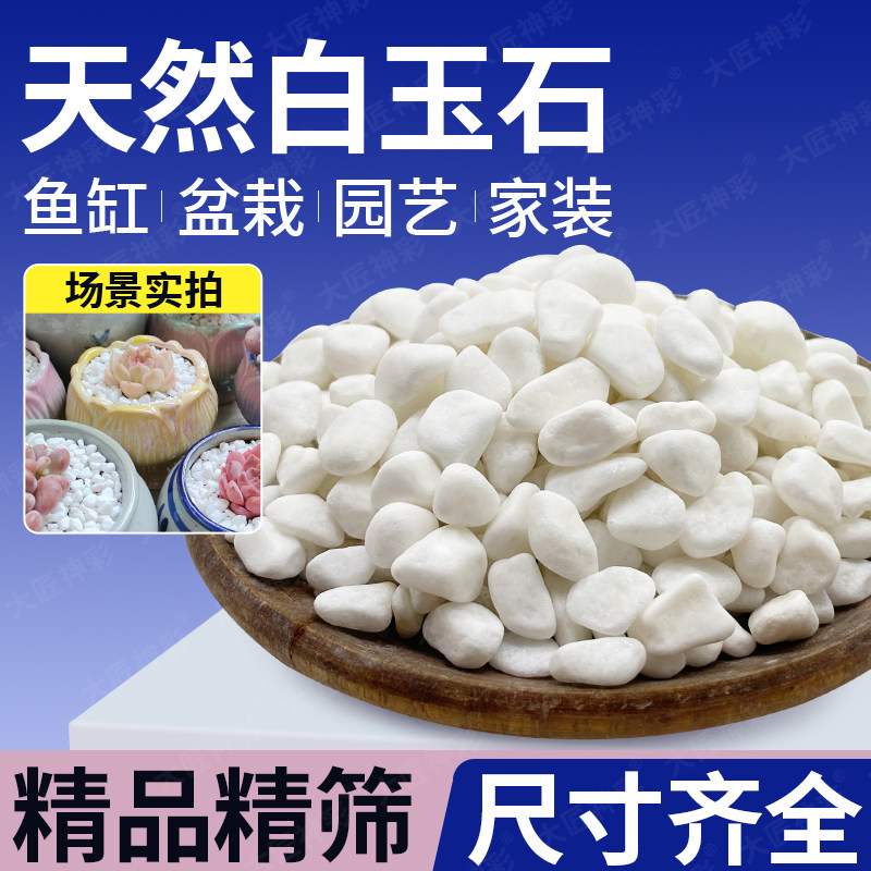 小白石子水培铺面石鹅卵石鱼缸造景白色石头花盆栽装饰庭院原石