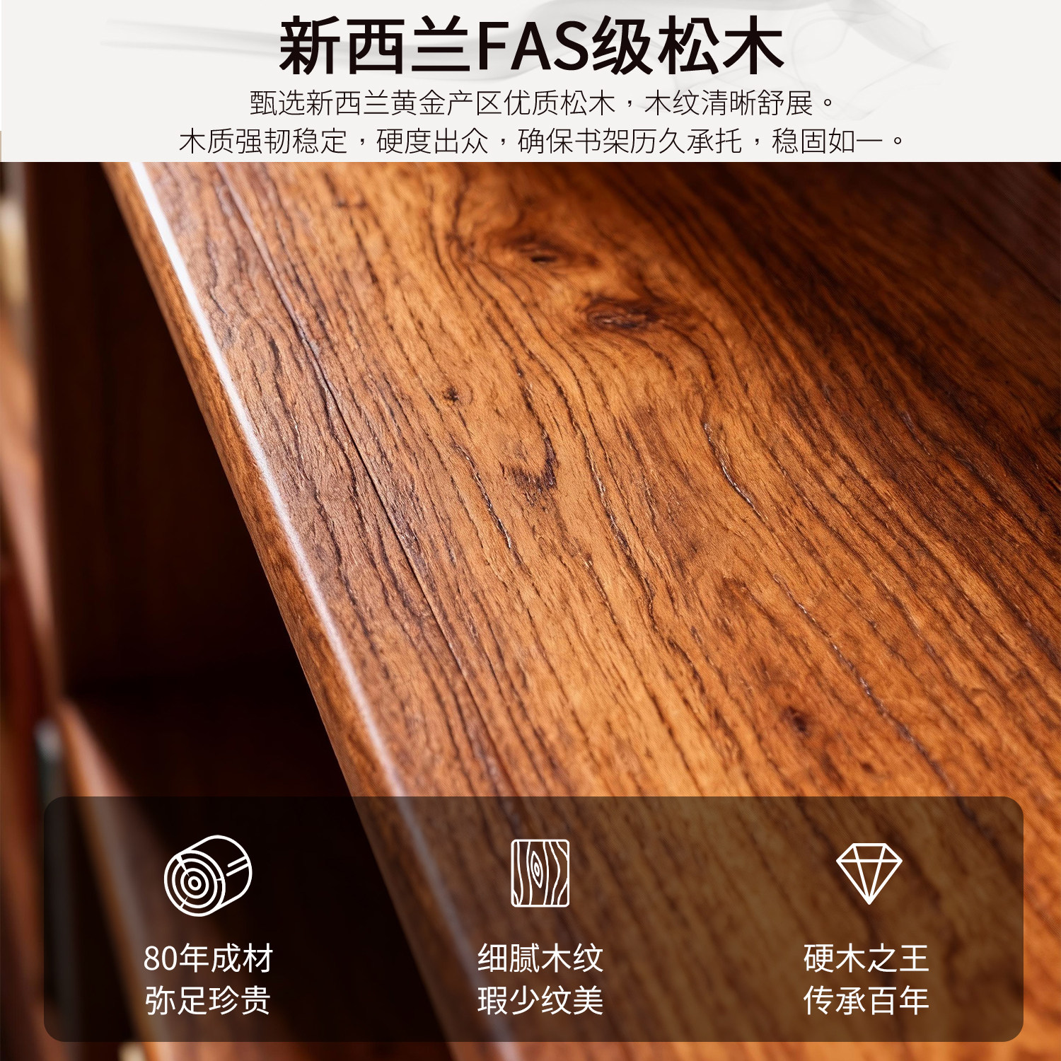松木实木书架一体靠墙落地置物架儿童书柜学生家用储物柜收纳柜子