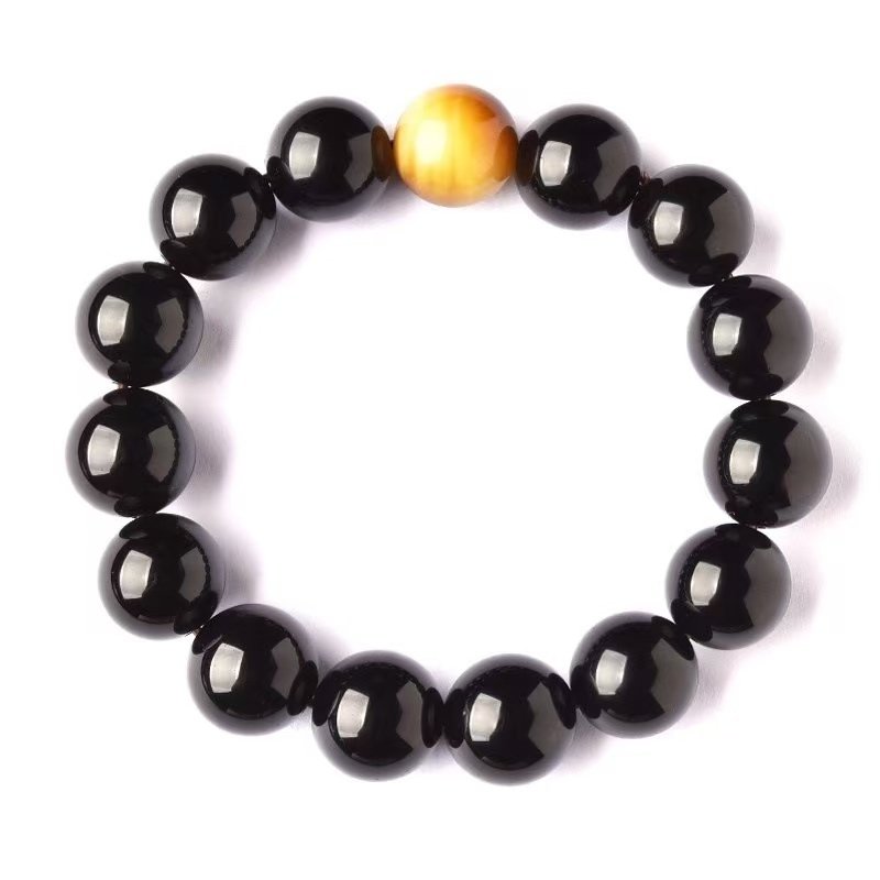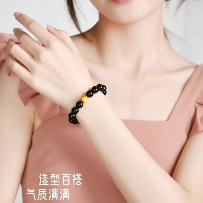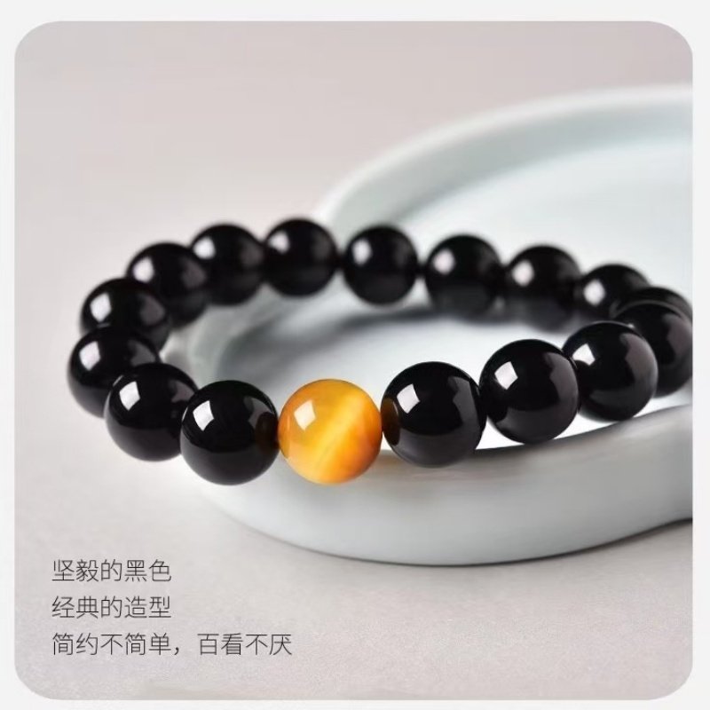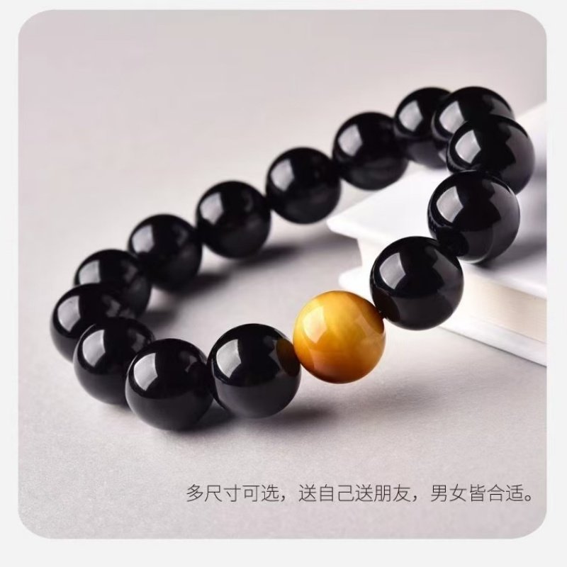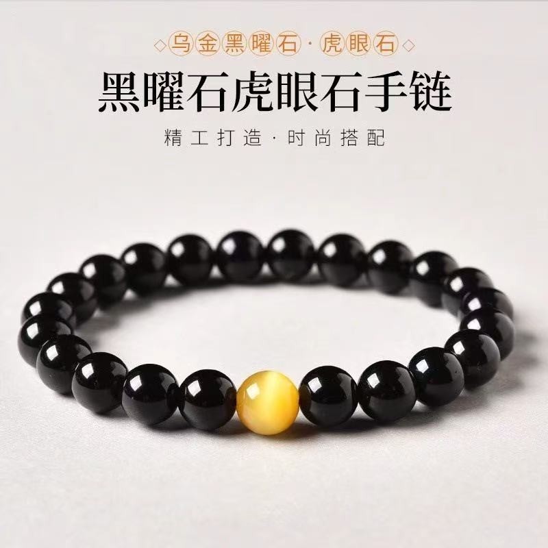 天然乌金黑曜石虎眼石手链情侣手串猫眼金虎晴石爆款男士佛珠饰品
