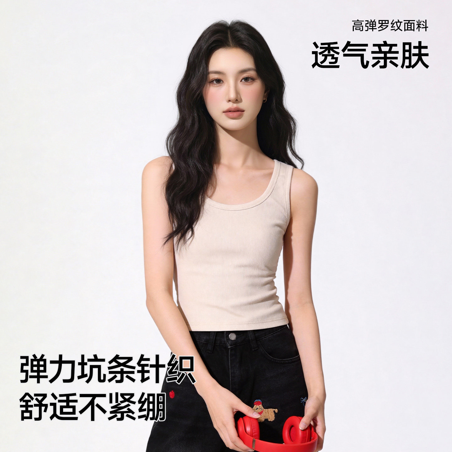 真维斯方领修身背心2026夏季新款
