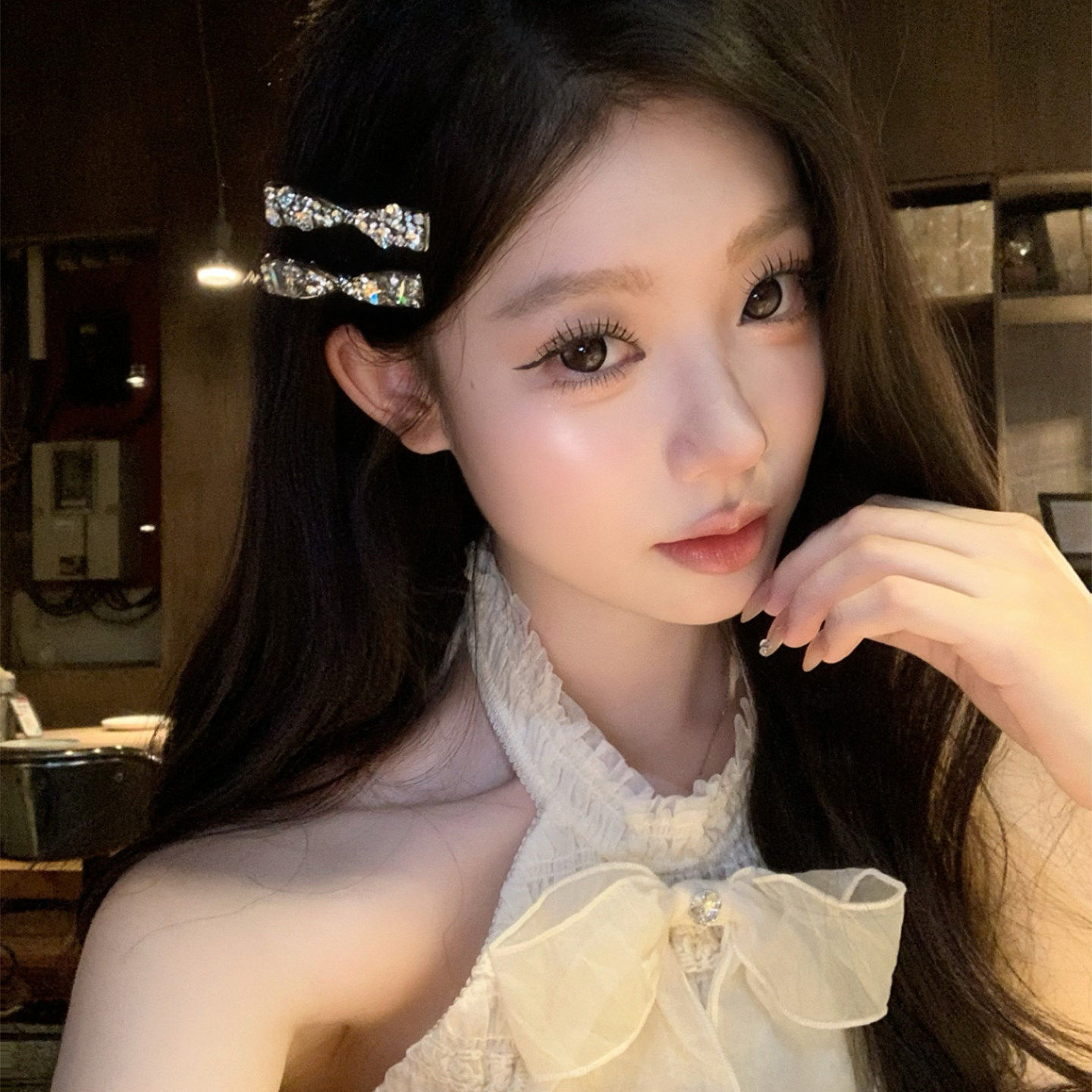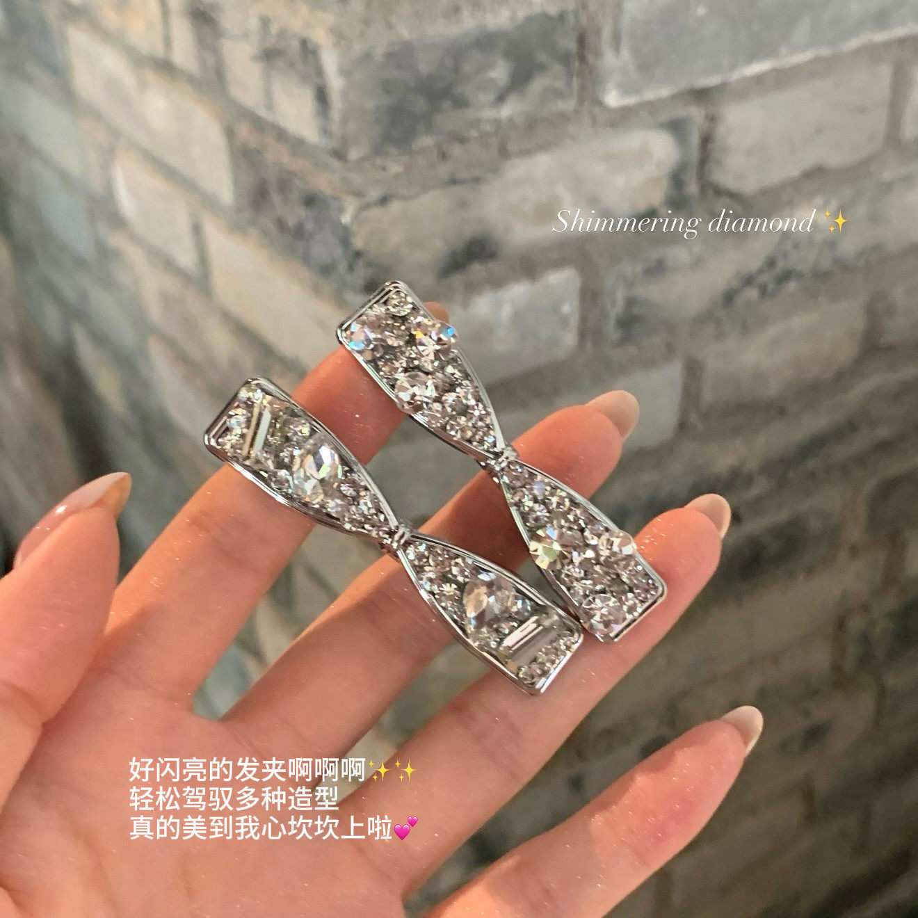 水钻锆石蝴蝶结发夹女精致侧边夹高级感发卡前额浏海夹发饰小夹子