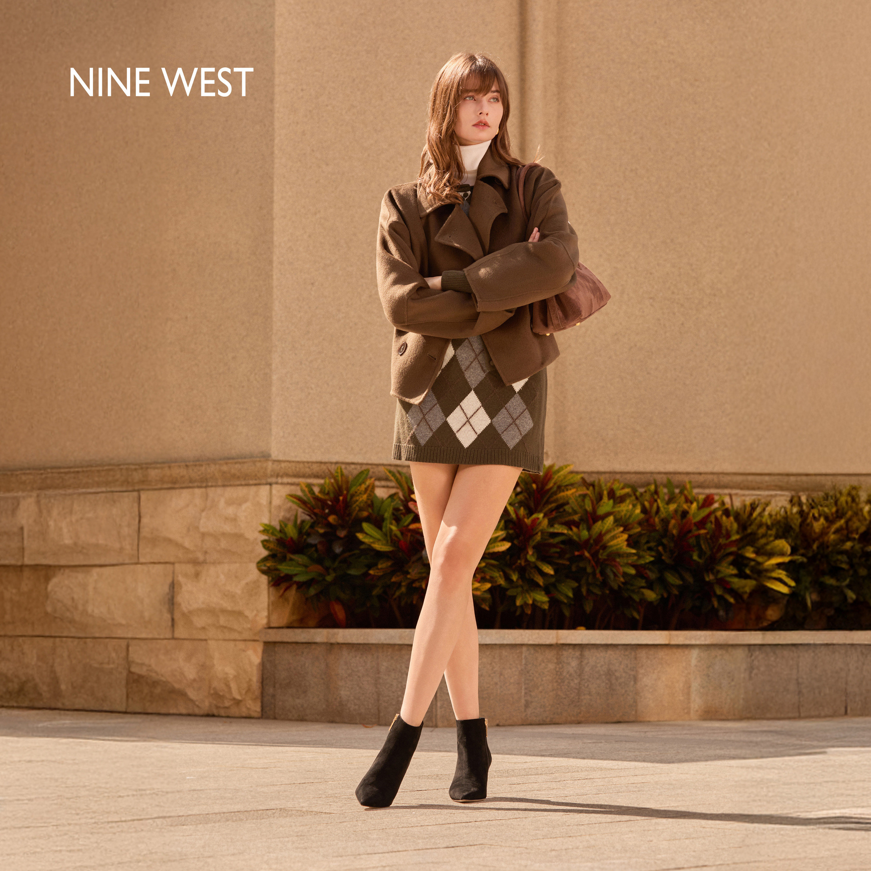 Nine West/玖熙高跟短靴女秋冬新款尖头时装靴黑色弹力瘦瘦靴