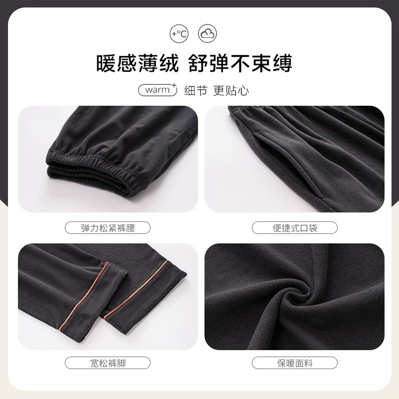 德绒睡裤男士秋冬款长裤大码宽松纯色保暖冬天可外穿家居裤睡衣