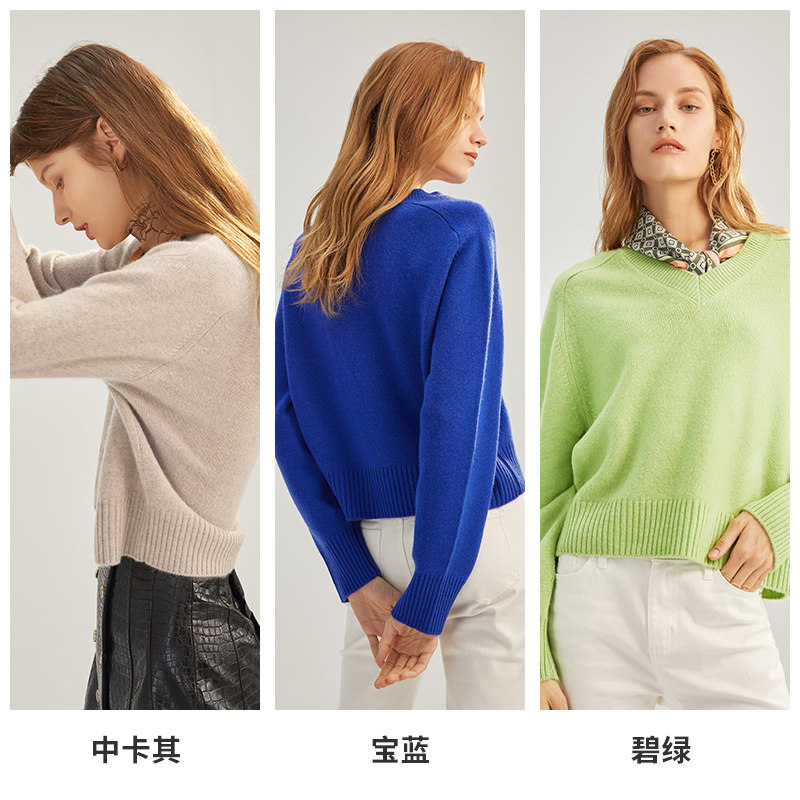 Navigare意大利小帆船羊绒衫女士秋季新款套头v领羊毛针织衫