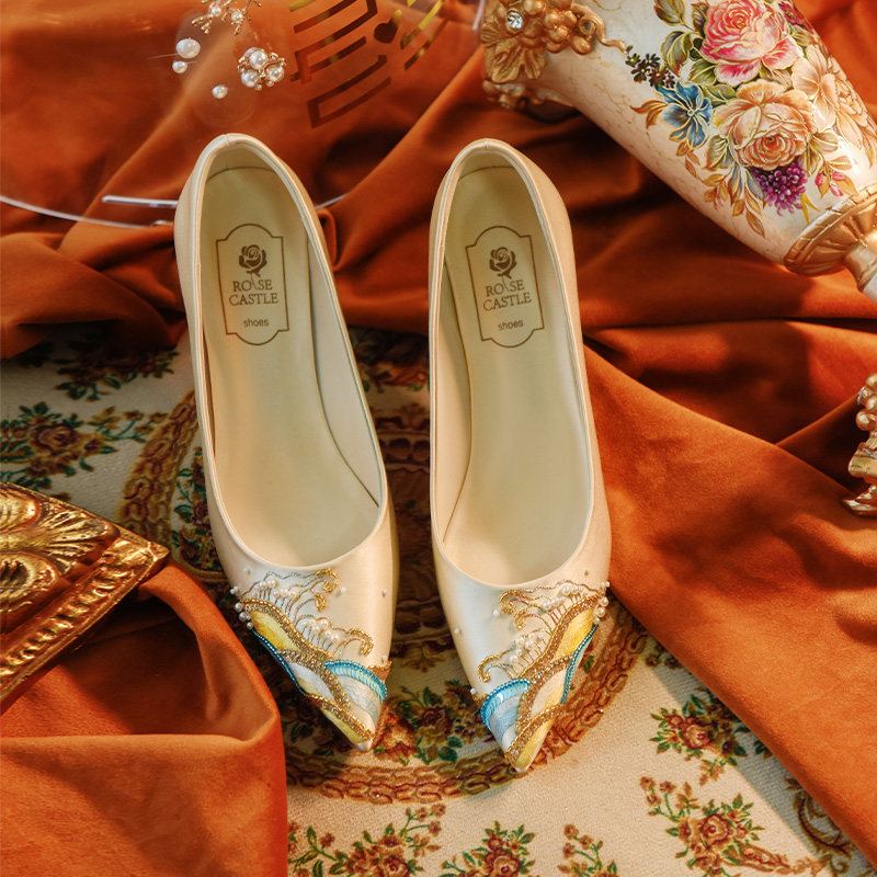 【乘风破浪】原创高定礼服鞋 法绣婚鞋主婚纱新娘鞋宴会旗袍鞋