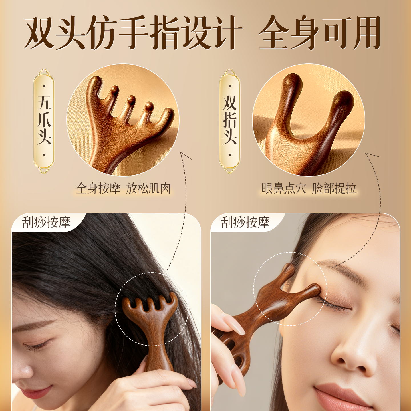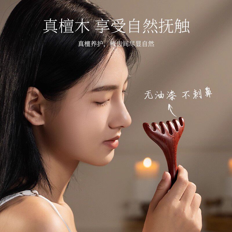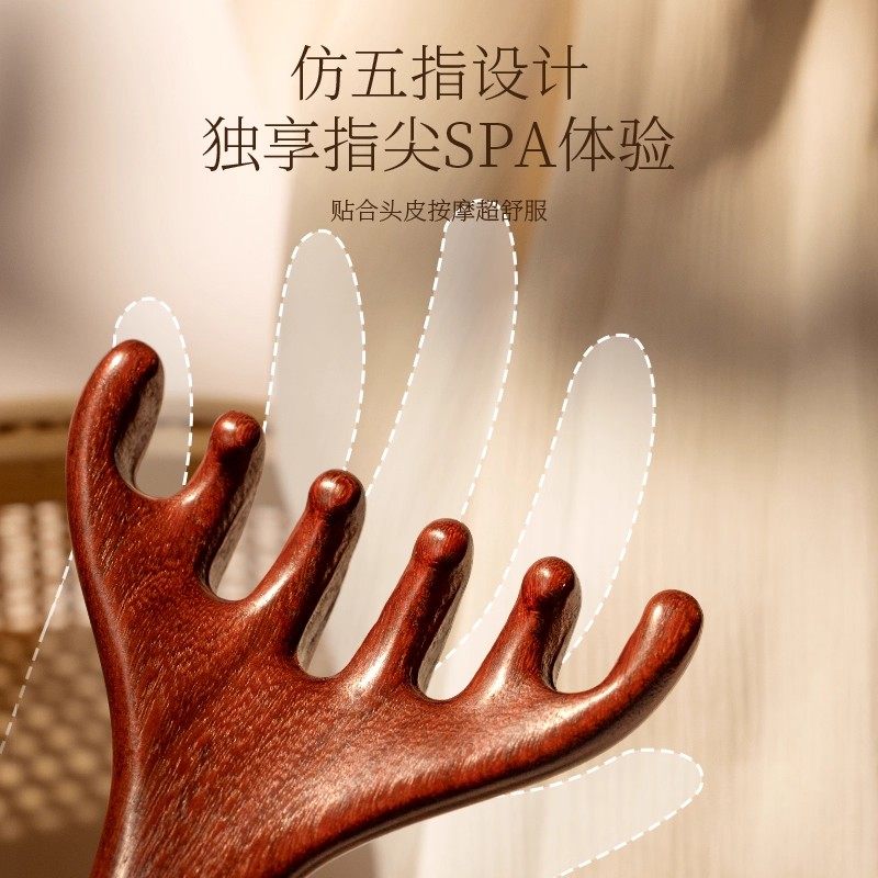 鹿角头部按摩经络梳子养生头疗工具金丝檀木头皮淋巴刮痧疏通神器