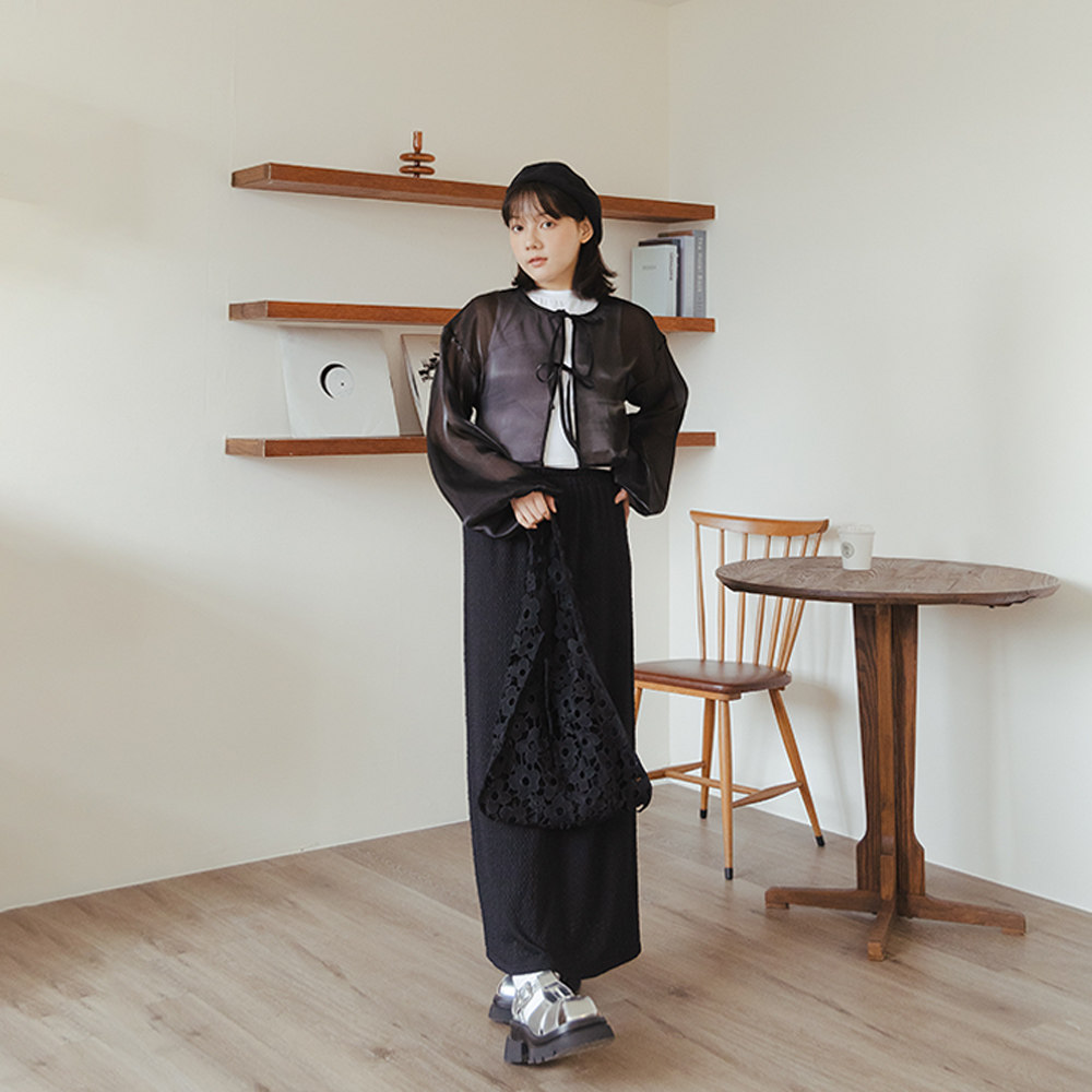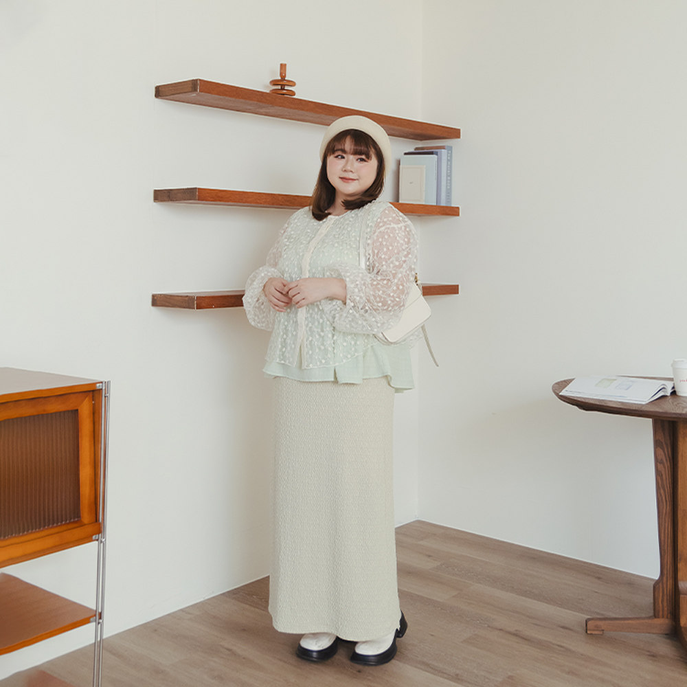 QUEENSHOP 2025春夏新品女装棉花糖立体缇花直筒半身长裙03021610