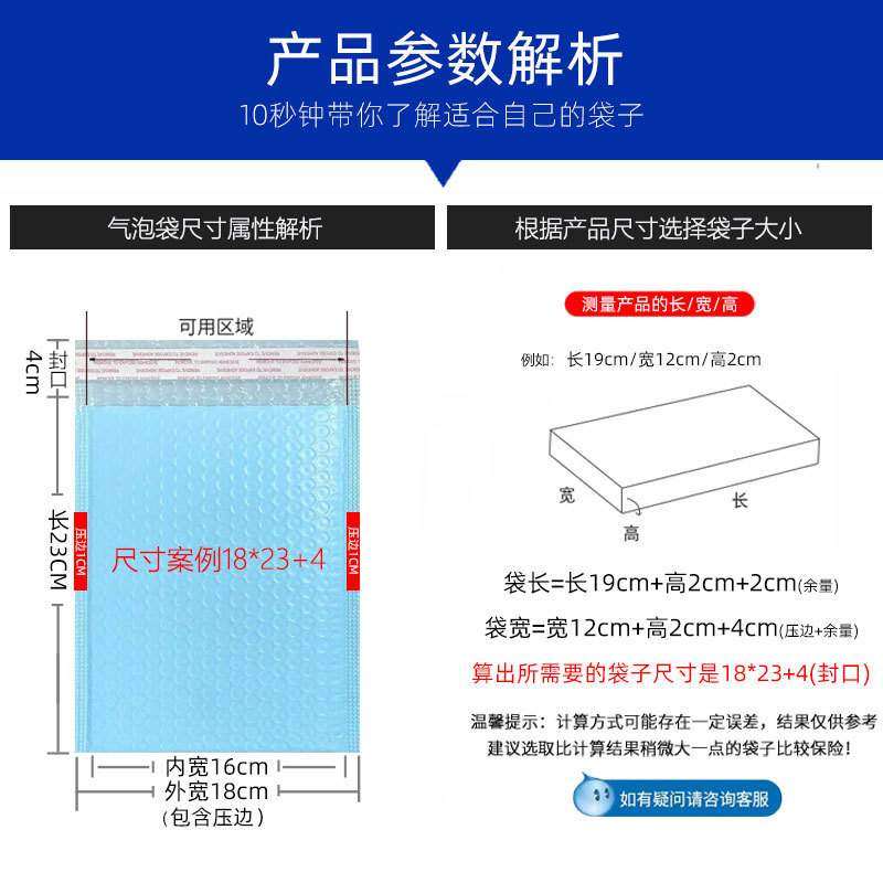 奶蓝色共挤膜气泡袋 快递袋包装泡沫打包袋 加厚防水防震泡泡膜袋