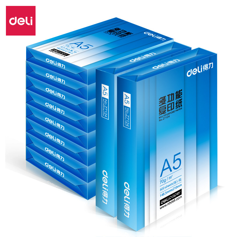 得力A5复印纸办公打印纸10包5000张整箱装70克80克Z7123 ZF7126