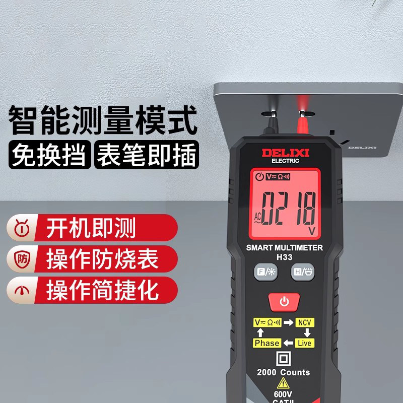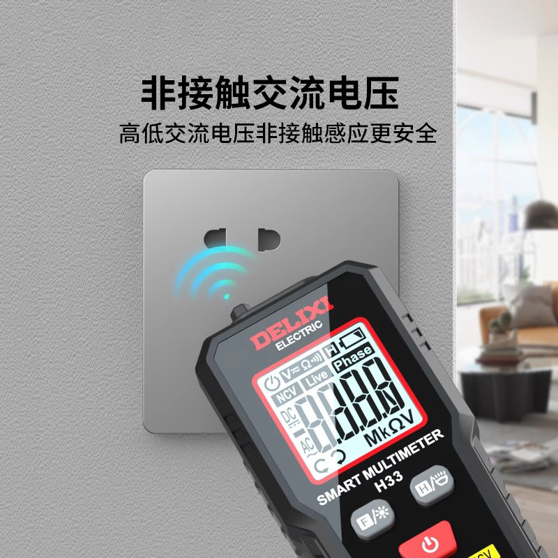 德力西电气防烧万用表NCV测量相序检测自动电压电阻通断数显电量