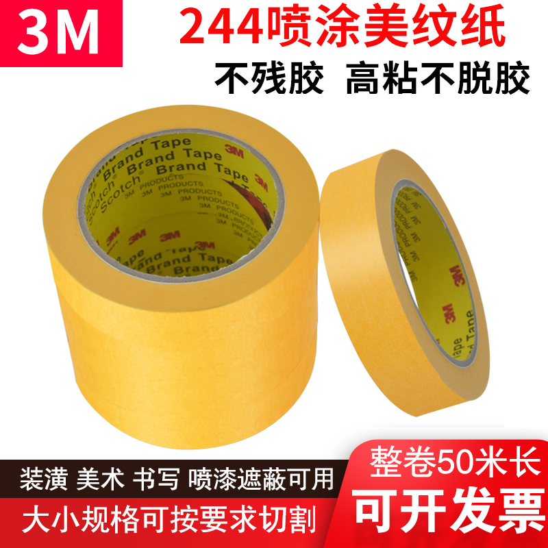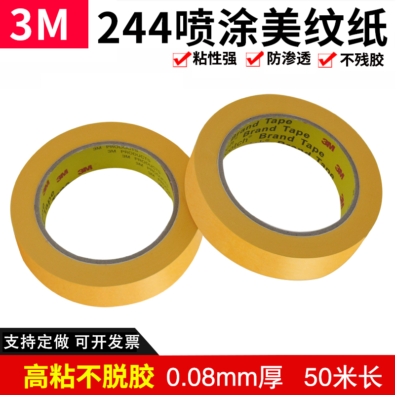 3M244美纹纸胶带 黄色和纸无痕防焊高温胶带汽车喷漆分色遮蔽胶纸