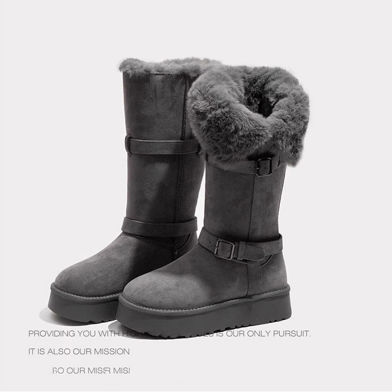厚底雪地靴长筒2025新款冬季加绒保暖内增高中筒东北灰色高筒棉鞋