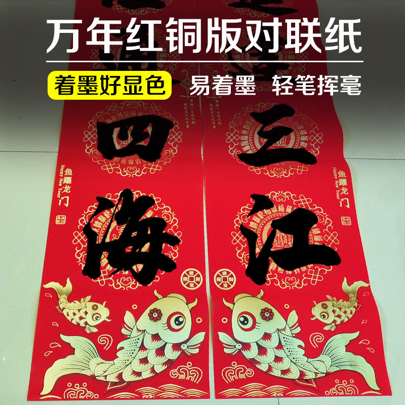 2026新款鱼跃龙门对联纸洒金红纸手写空白春联七言十一言铜版纸