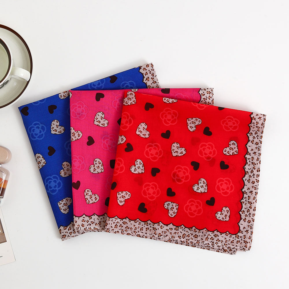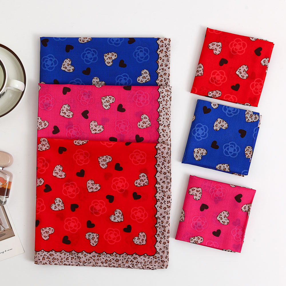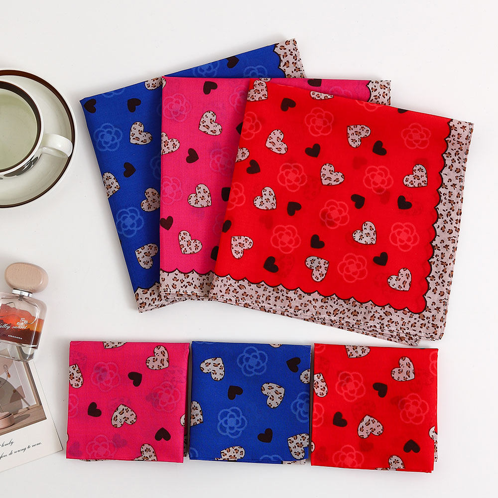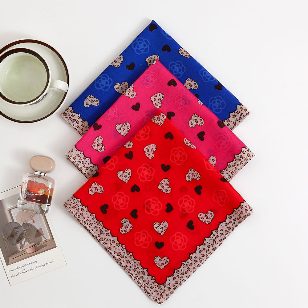 43厘米女士纯棉手帕复古风撞色花朵爱心手绢柔软舒适全棉印花手巾