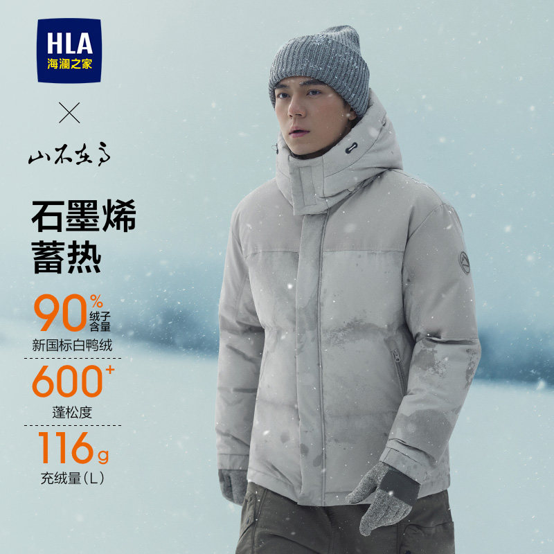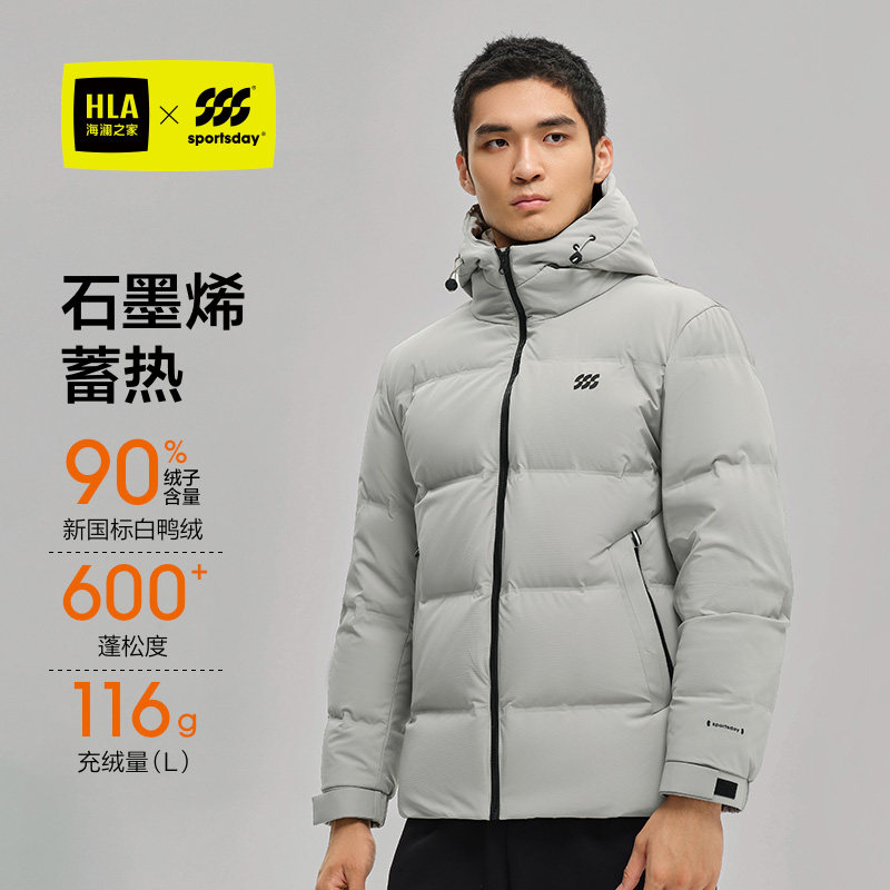 HLA/海澜之家运动连帽羽绒服25秋冬新款石墨烯白鸭绒保暖厚外套男