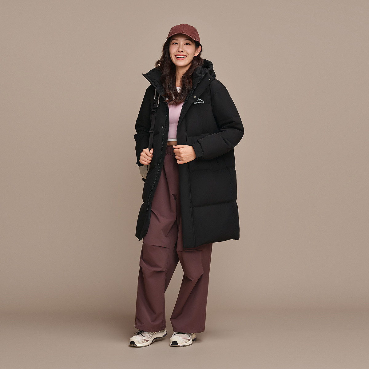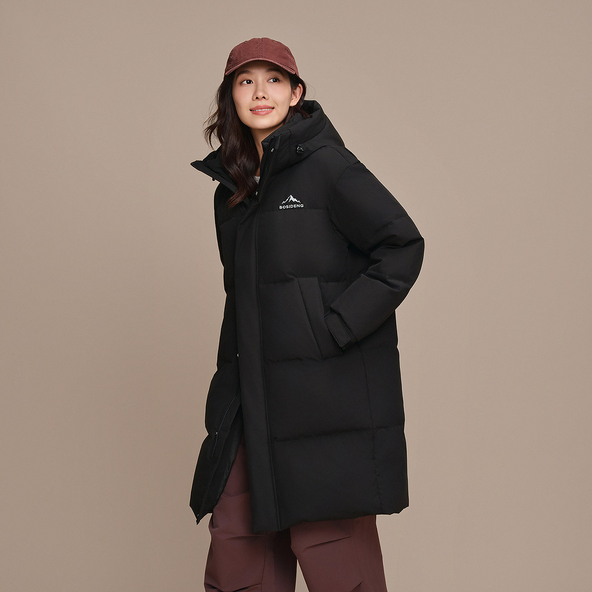 【新年联名】波司登2025冬季新款羽绒服男女同款运动连帽长款红色