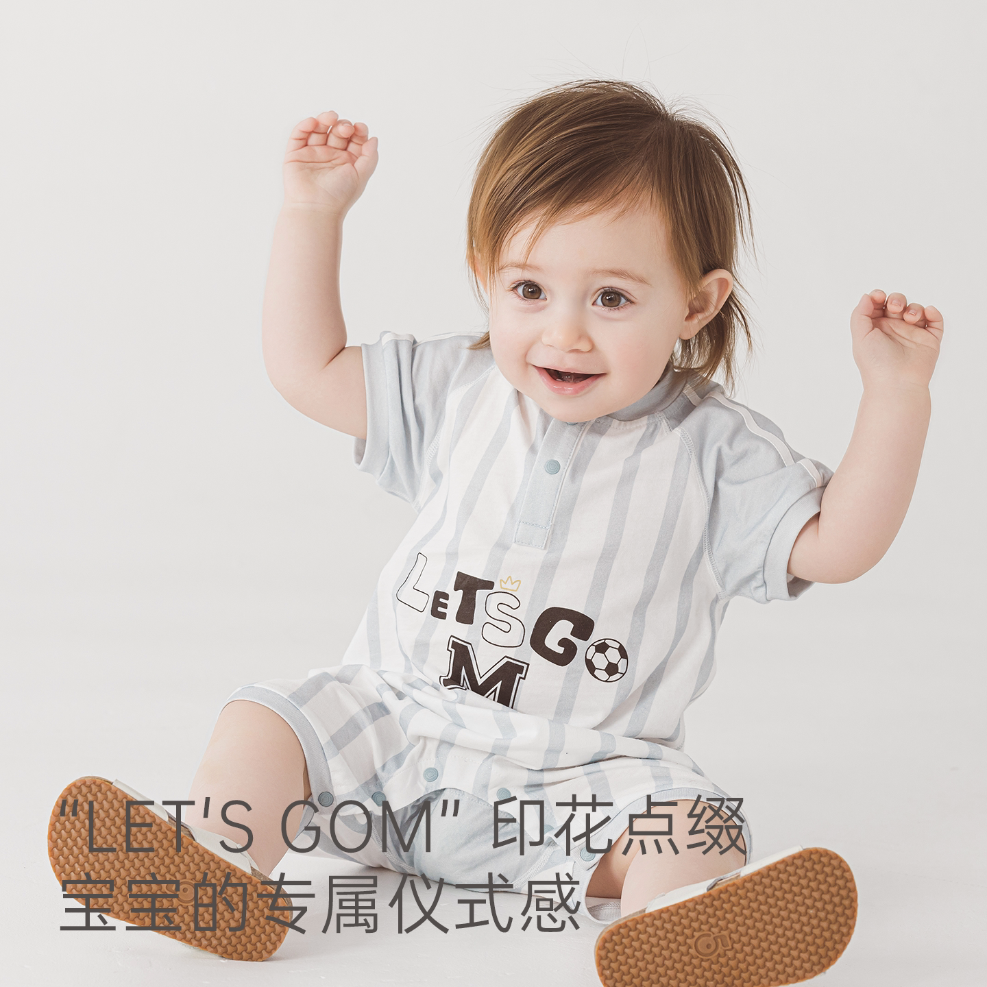 婴儿短袖连体衣夏季薄款宝宝纯棉爬服运动风足球服洋气外出哈衣