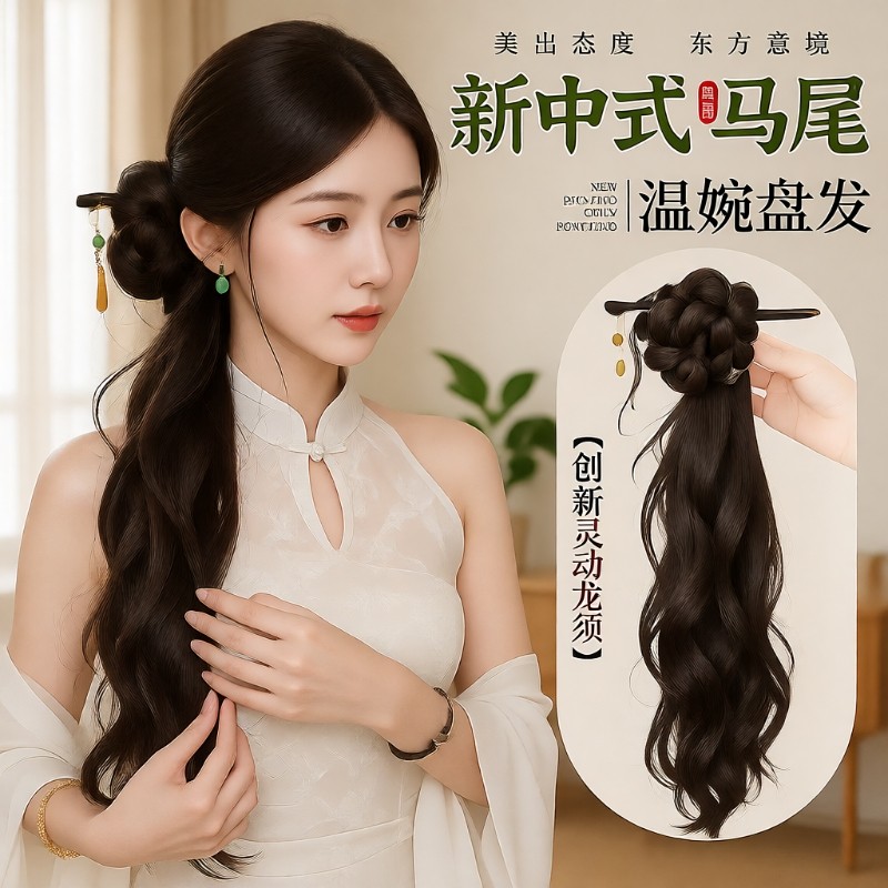 假发辫假发抓夹马尾女新中式温婉盘发旗袍轻国风仿真辫子假发马尾