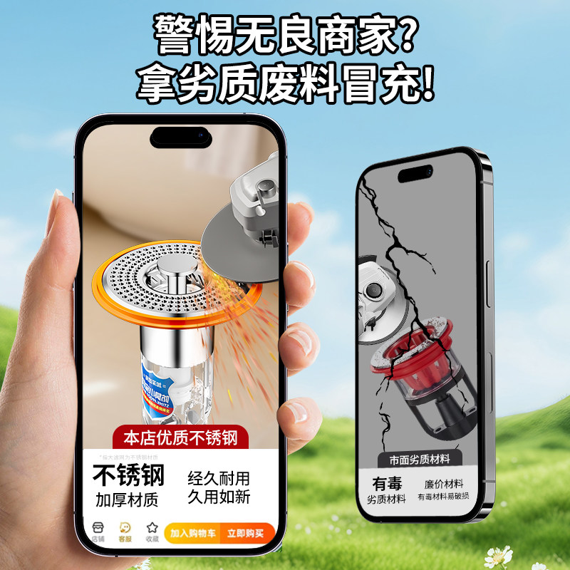 彩虹二合一地漏盖卫生间防臭厨房防堵水槽软胶下水道厕所堵口过滤