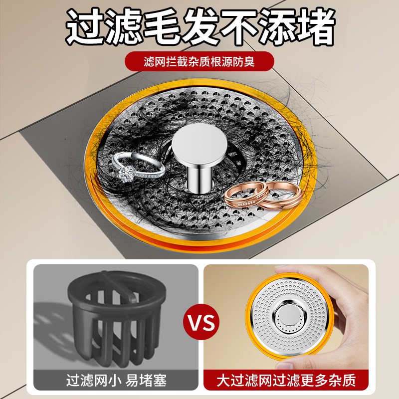 地漏加厚不锈钢防臭五金过滤芯卫生间阳台全铜下水道洗衣机浴室