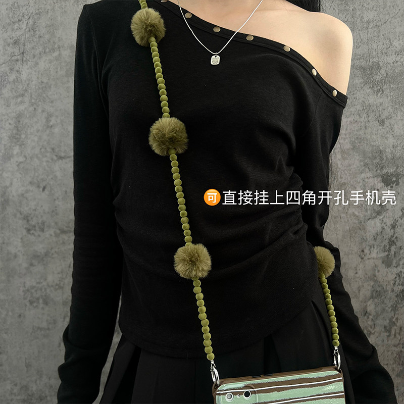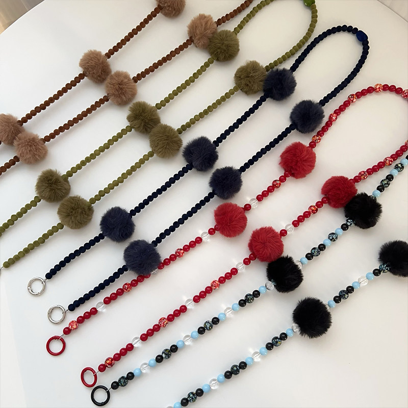 原创秋冬毛绒球串珠纯长短链条适用手机壳包包户外可斜挎手提防摔