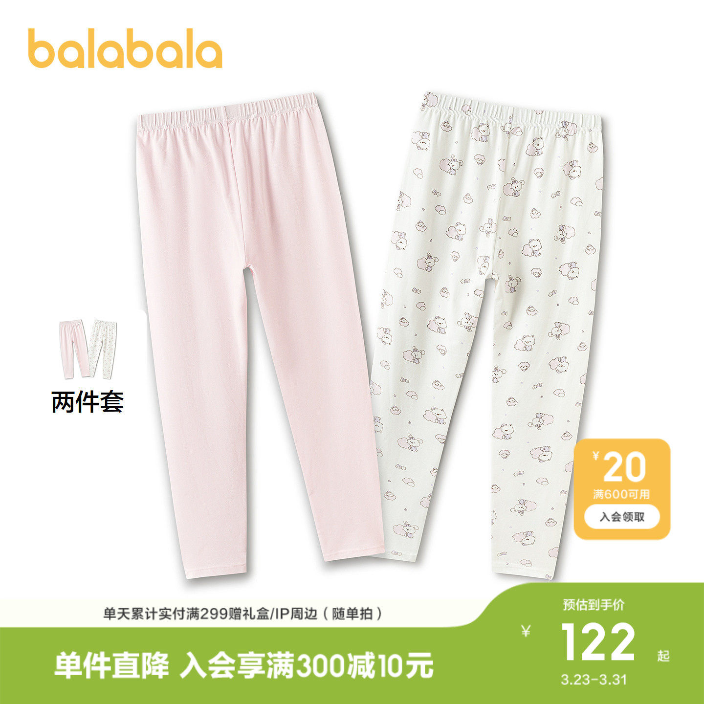 【商场同款】巴拉巴拉儿童保暖裤男童2026新款春睡裤打底裤两件装
