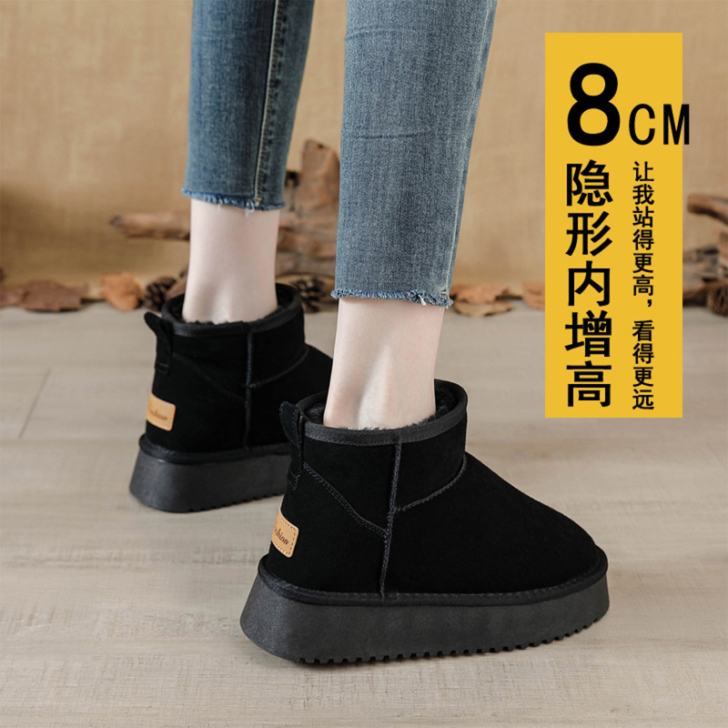 miu家厚底雪地靴女冬季真皮短靴羊毛侧拉链增高厚底加绒毛毛棉鞋