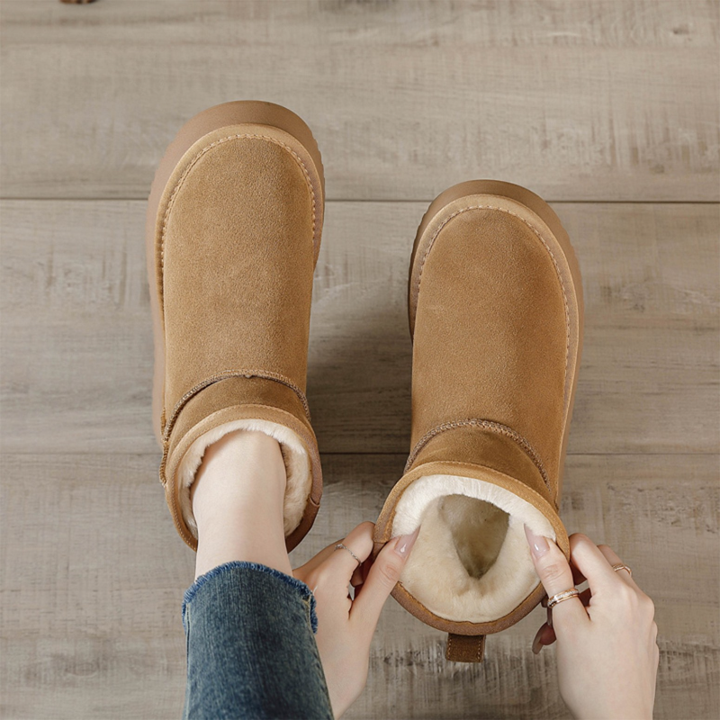 油叽叽~真皮羊毛雪地靴女冬季加绒加厚保暖棉靴厚底增高短筒靴子