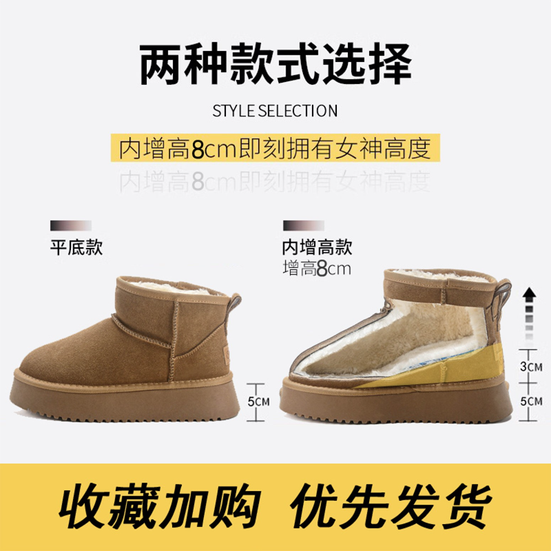 厚底内增高雪地靴女款2025新款冬季加绒加厚短筒真皮防水雪地棉鞋