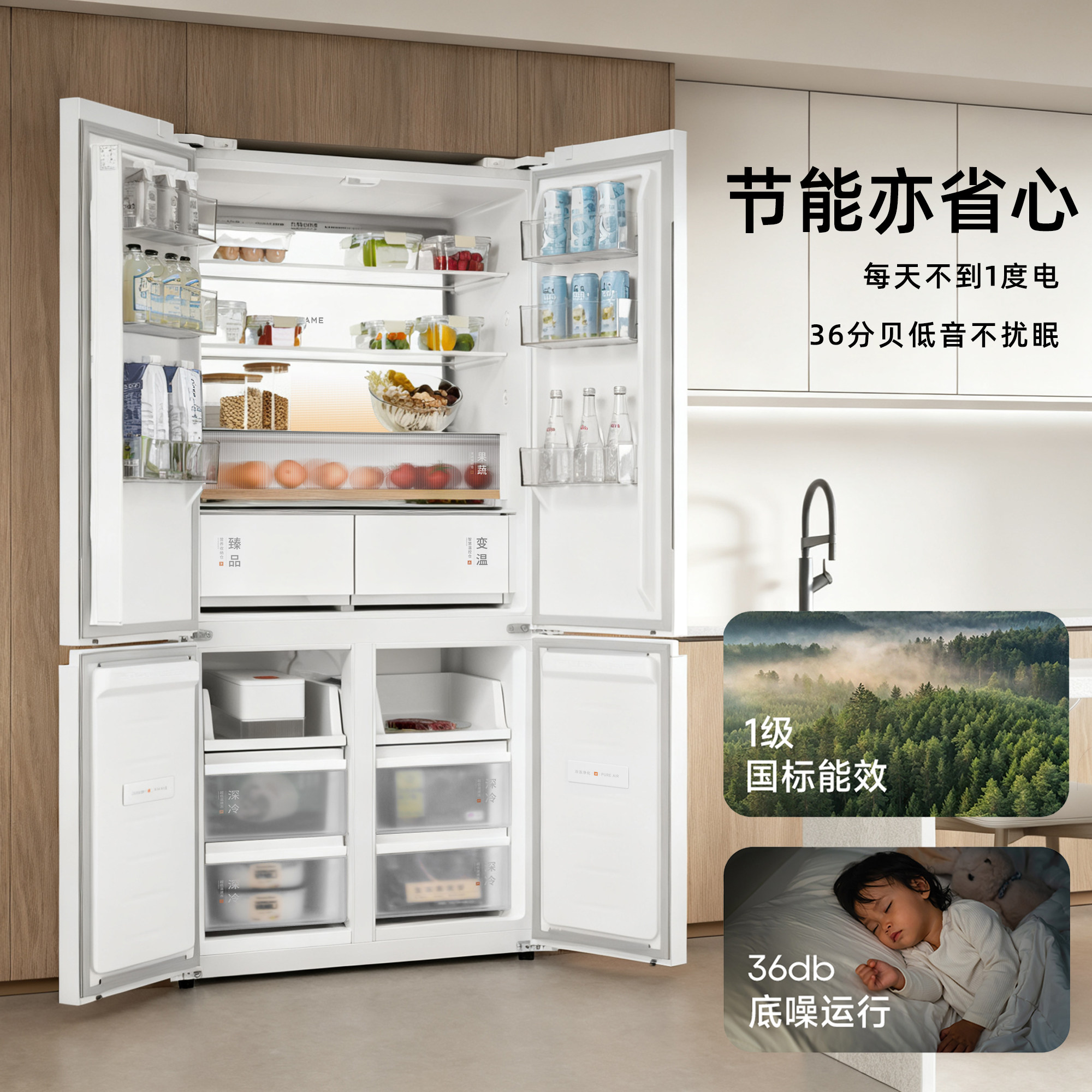 新品追觅时光屿十字对开501L超薄平嵌风冷家用节能电冰箱政府补贴