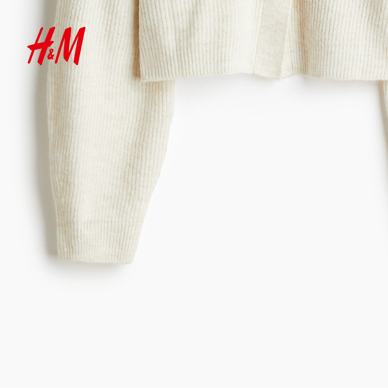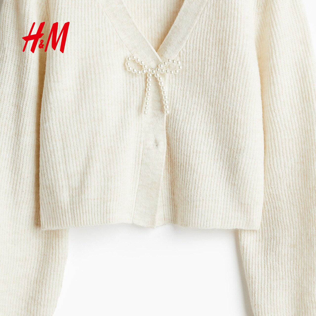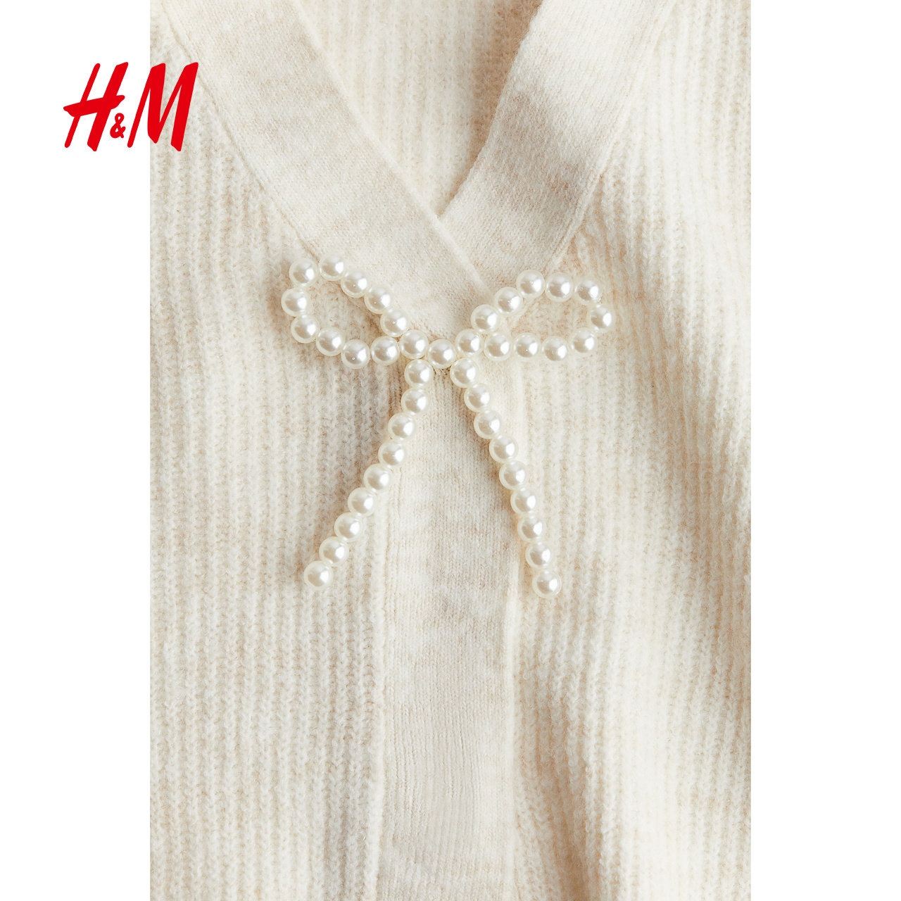 HM女装毛针织衫春季冬新款蝴蝶结罗纹时尚节日礼服开衫1247686