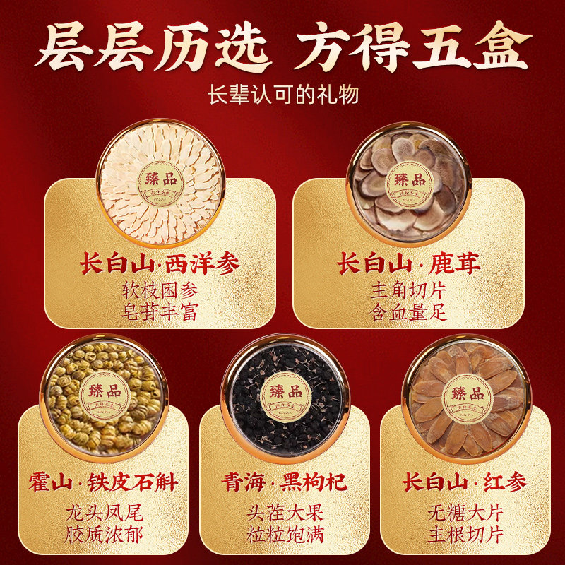 西洋参五宝礼盒石斛红参黑枸杞鹿茸年货送礼补品长辈过年礼品实用