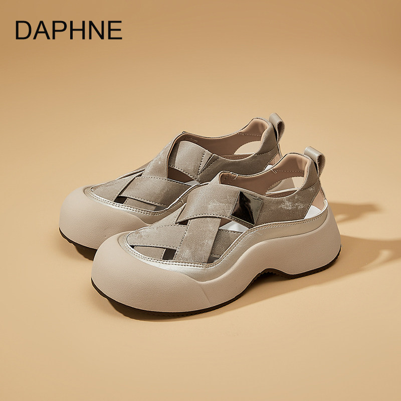 达芙妮复古透气坡跟凉鞋女2026新款夏季外穿编织休闲包头罗马凉鞋