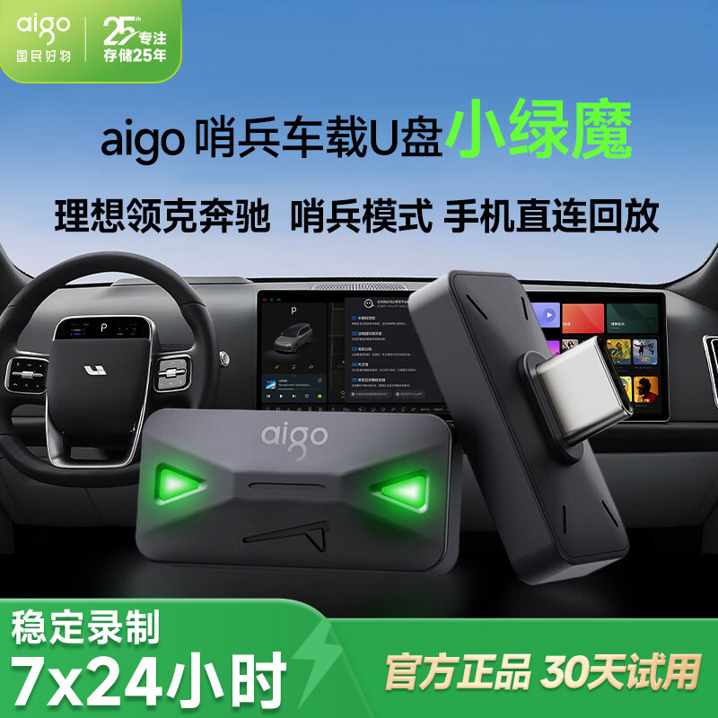爱国者小绿魔行车记录仪车载U盘哨兵模式TypeC迷你手机优盘大容量