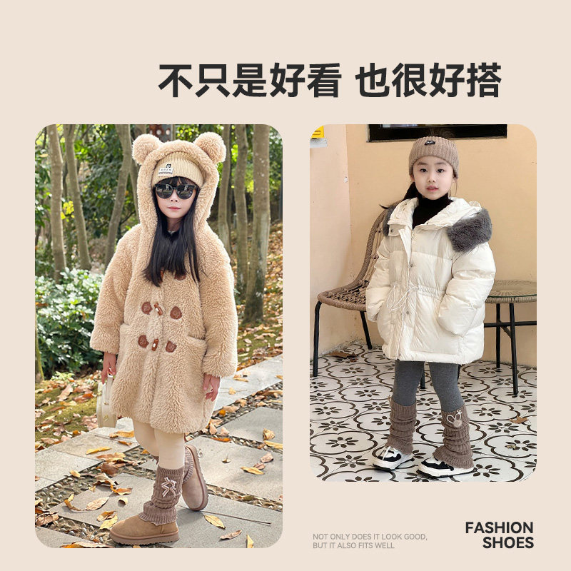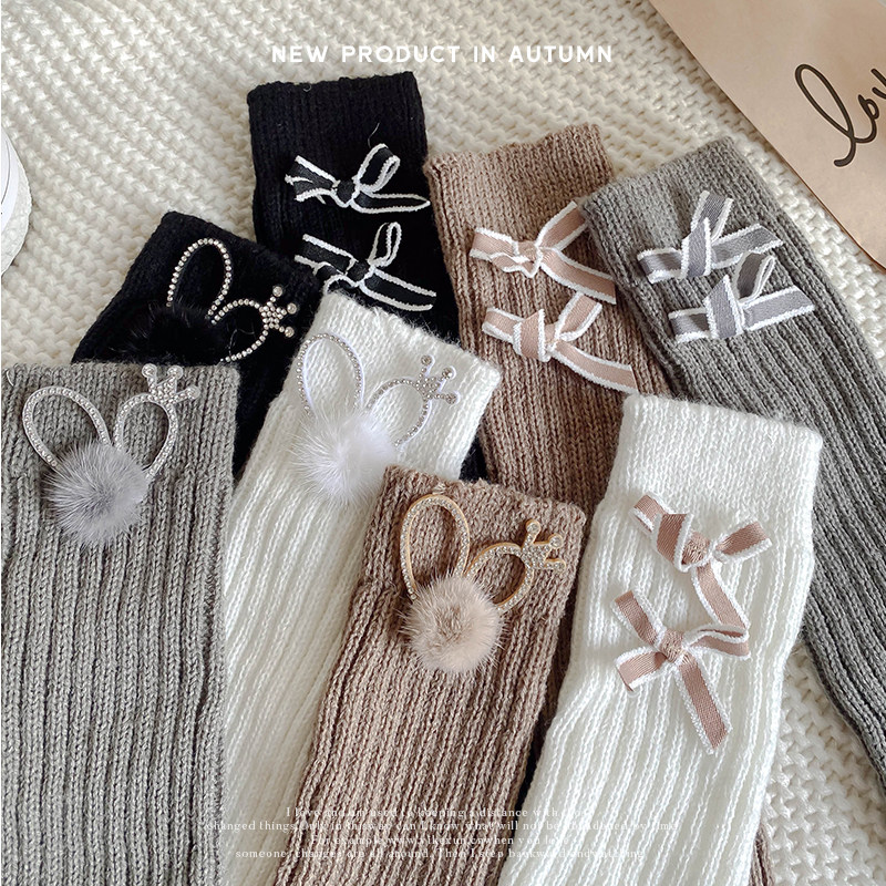 儿童护膝袜套宝宝过膝中筒袜针织长袜子女童蝴蝶结秋冬小腿堆堆袜