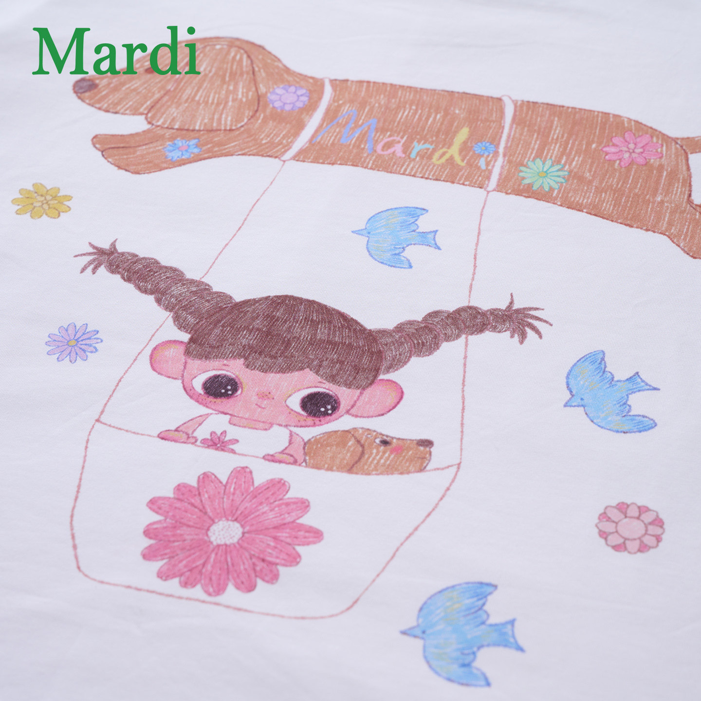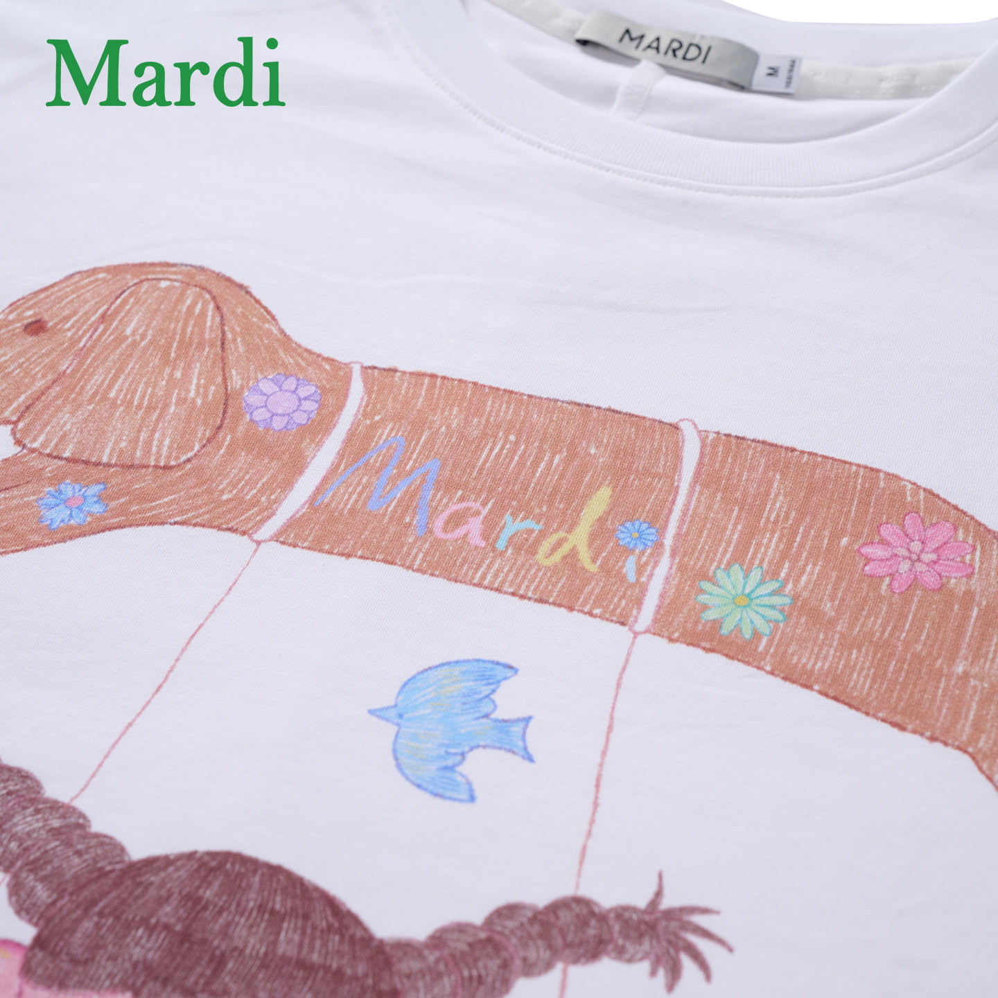 MARDI可爱卡通时尚长袖T恤女白色抽绳休闲上衣动物韩版圆领通勤风