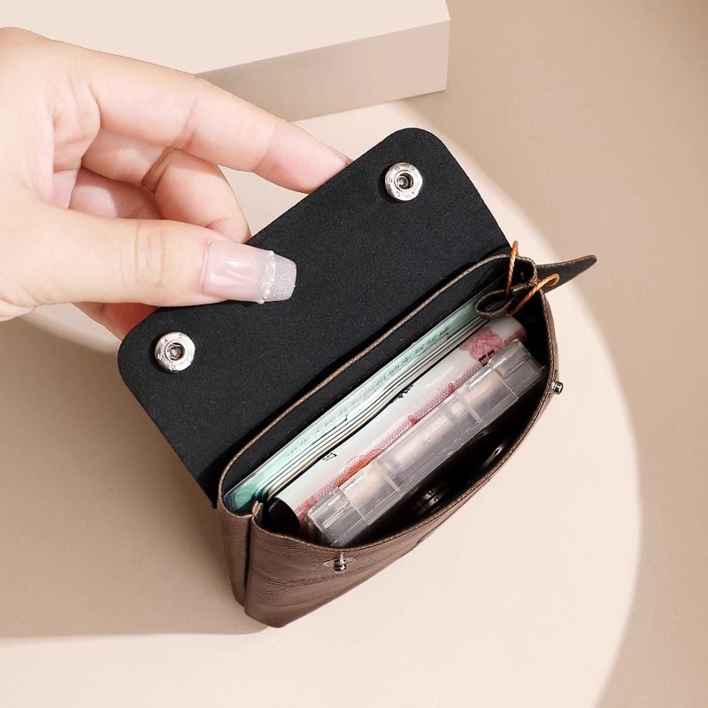 稻草人钱包女真皮黑色钱夹小巧小众高级感零钱包牛皮精致皮夹卡包