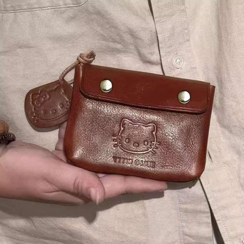 HelloKitty手工皮质零钱包女可爱迷你耳机钥匙证件随身小卡包收纳