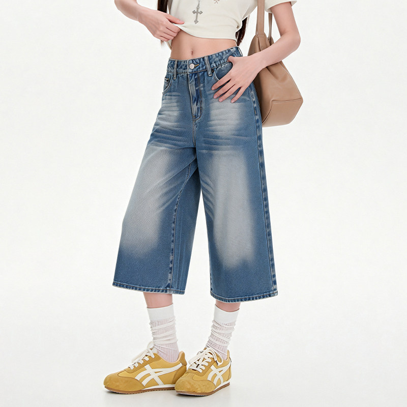 KCV真维斯七分阔腿牛仔裤女2026夏新款高腰显瘦薄款直筒休闲裤女