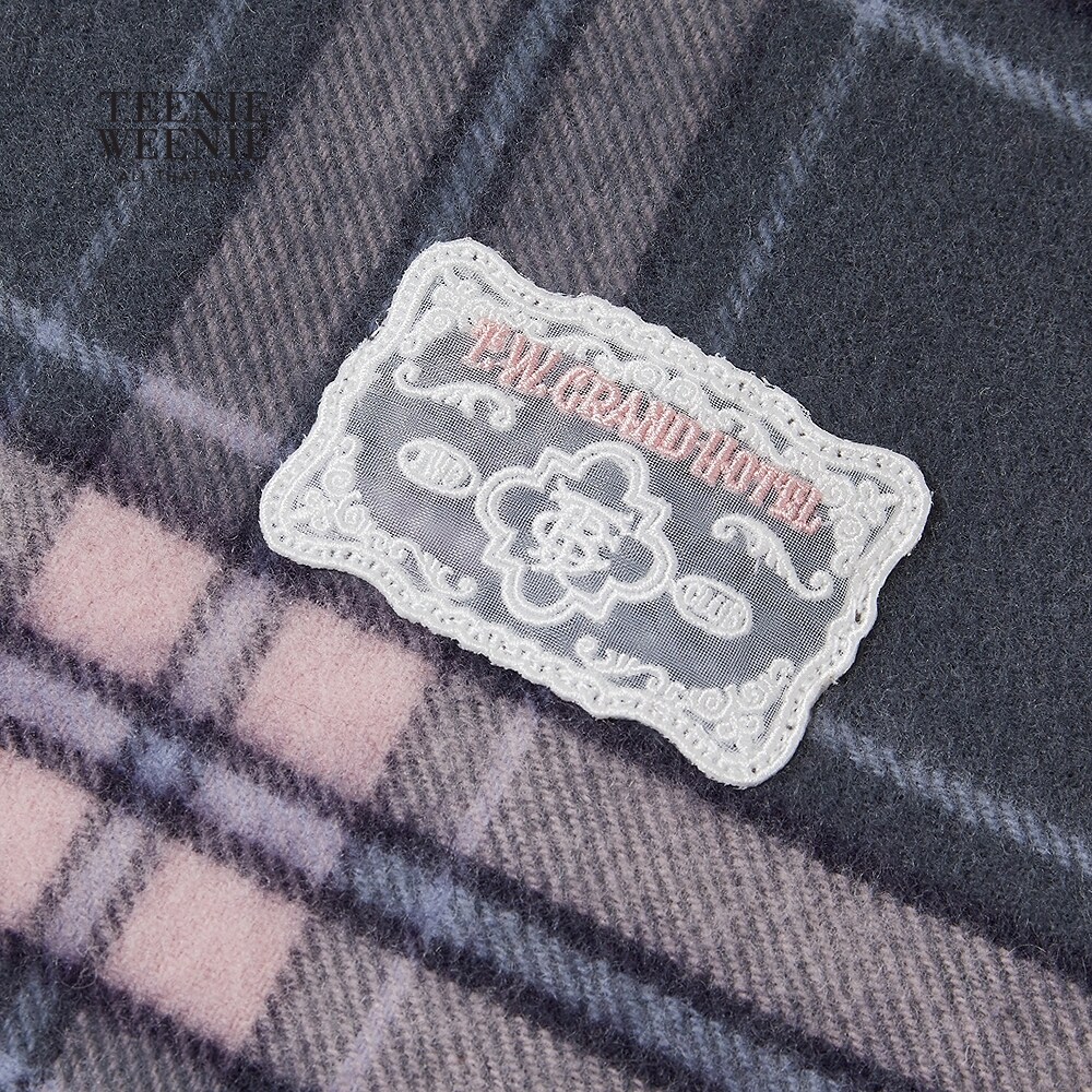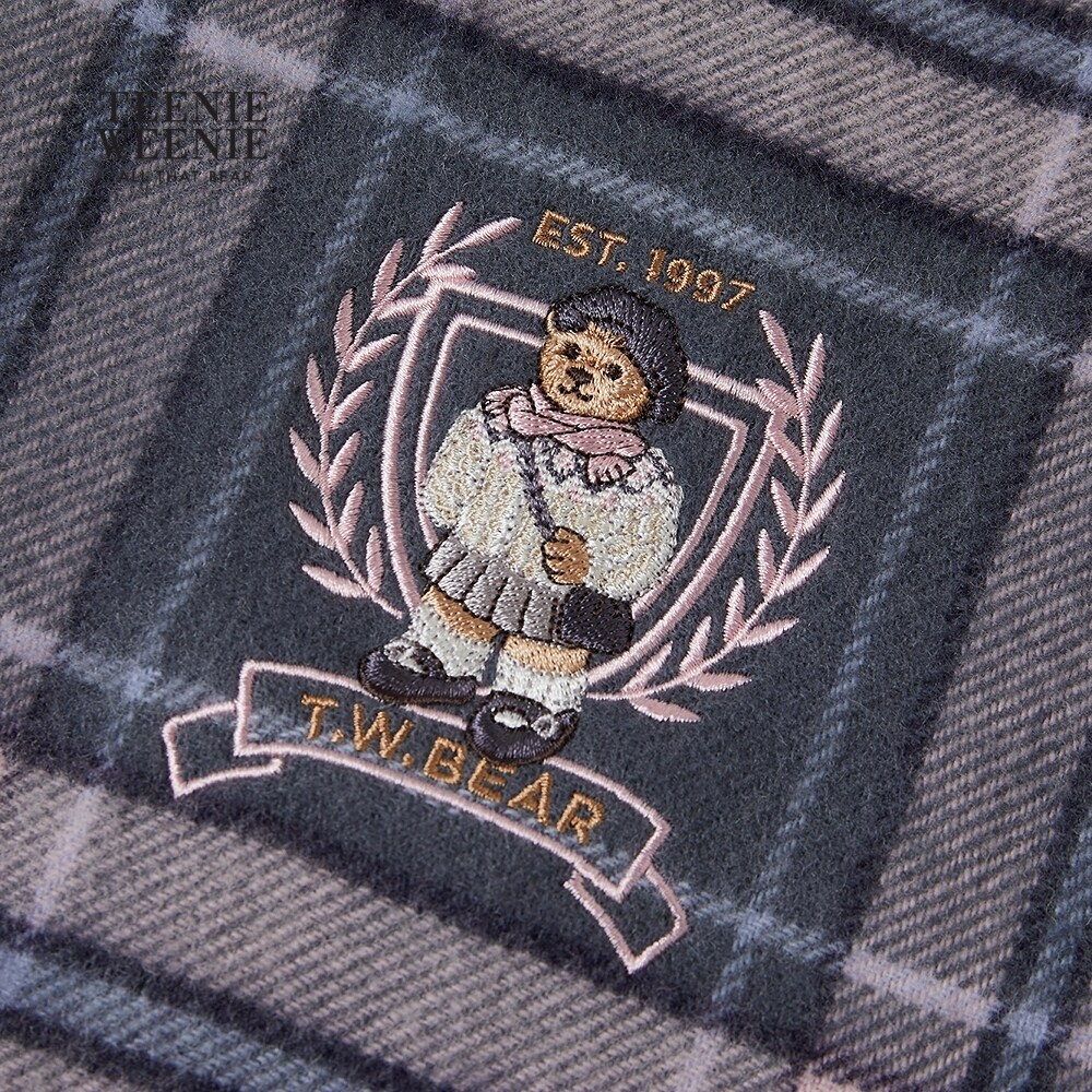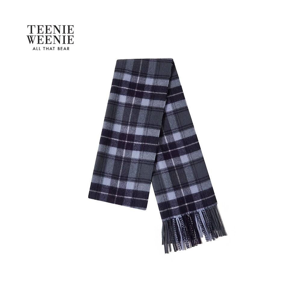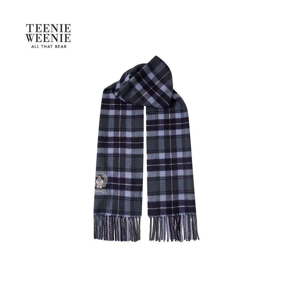 TeenieWeenie小熊女装25秋季新款典雅格纹趣味刺绣绵羊毛流苏围巾