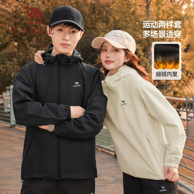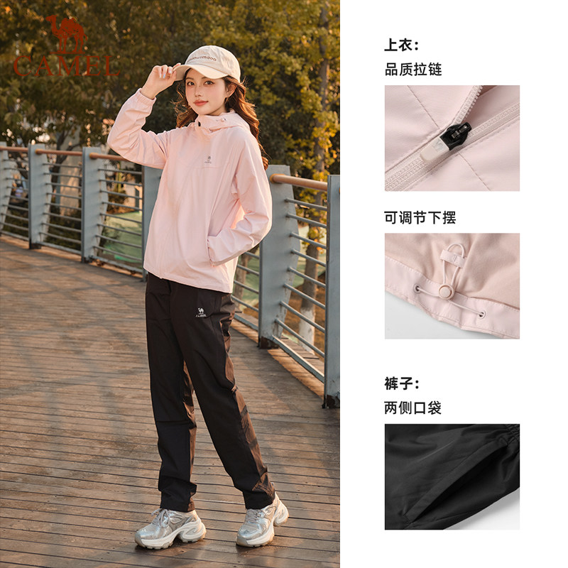 骆驼运动套装2025春季男女情侣户外防水防风外套跑步长裤两件套潮