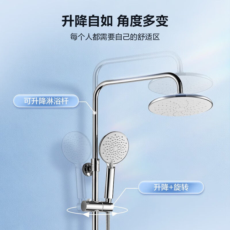 恒洁卫浴淋浴花洒套装家用三功能增压浴室沐浴花洒淋雨931-333