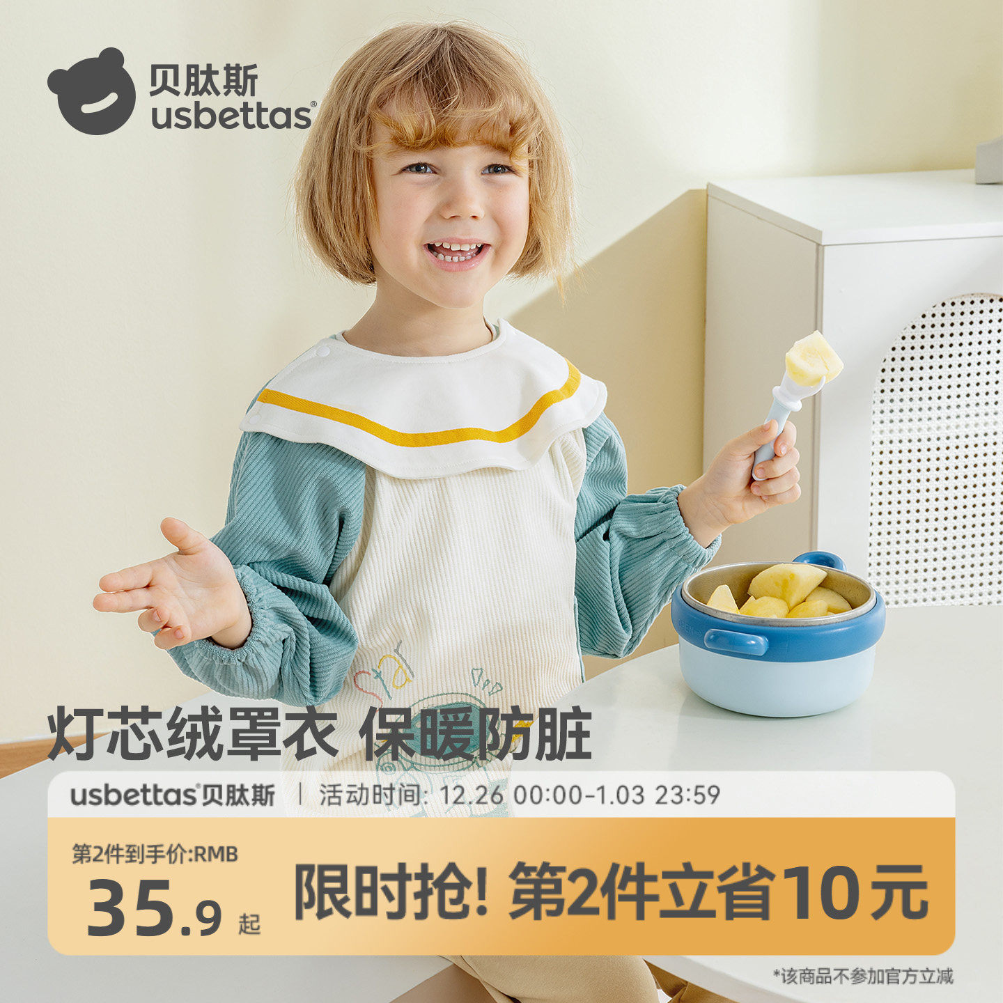 贝肽斯宝宝罩衣儿童外穿防水防脏吃饭围兜幼儿灯芯绒围裙冬天保暖