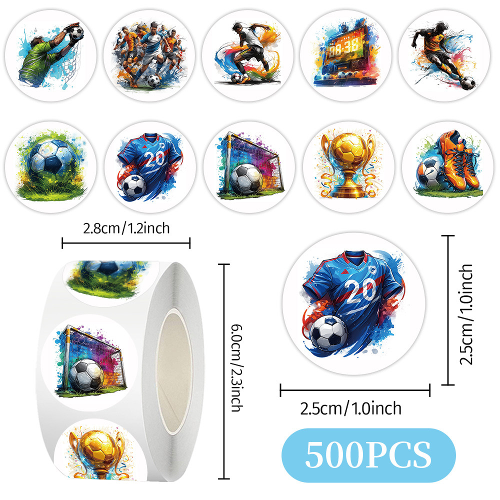 1000贴彩绘足球卷卷贴ins个性创意体育运动球类图案封口贴画自粘