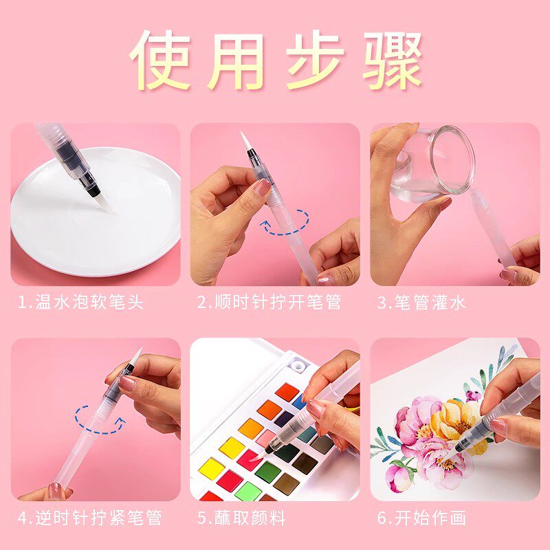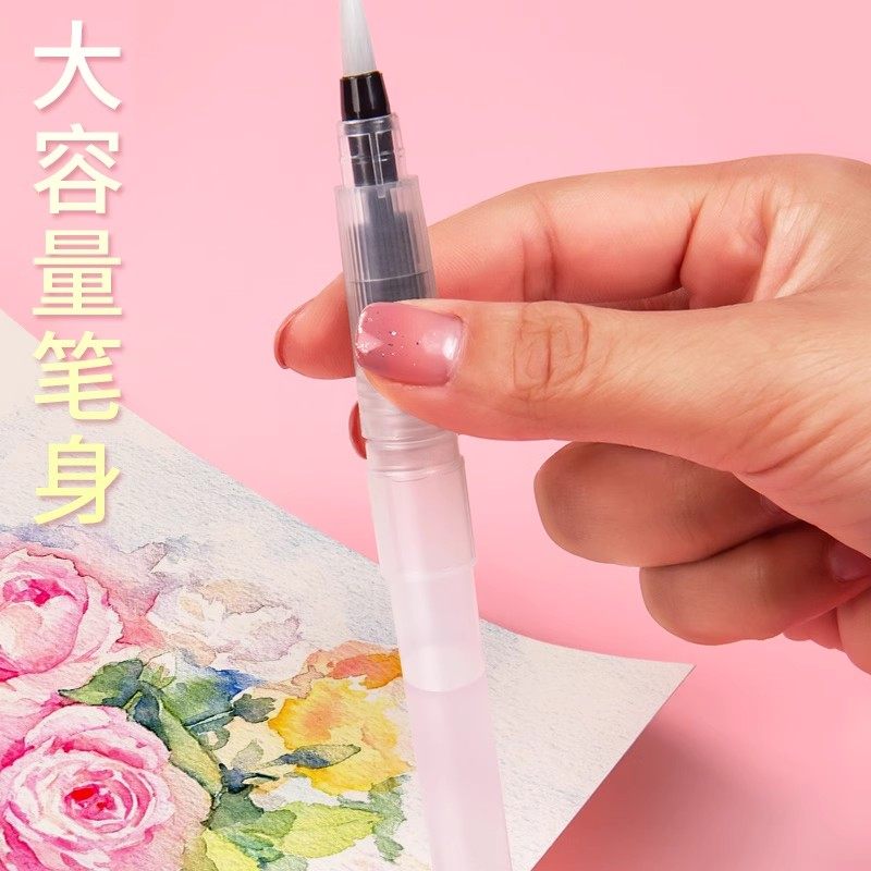 自来水笔套装水彩水粉注水式大容量软头笔初学者美术学生绘画手绘专用吸水笔水溶储水固体颜料书法勾线毛笔