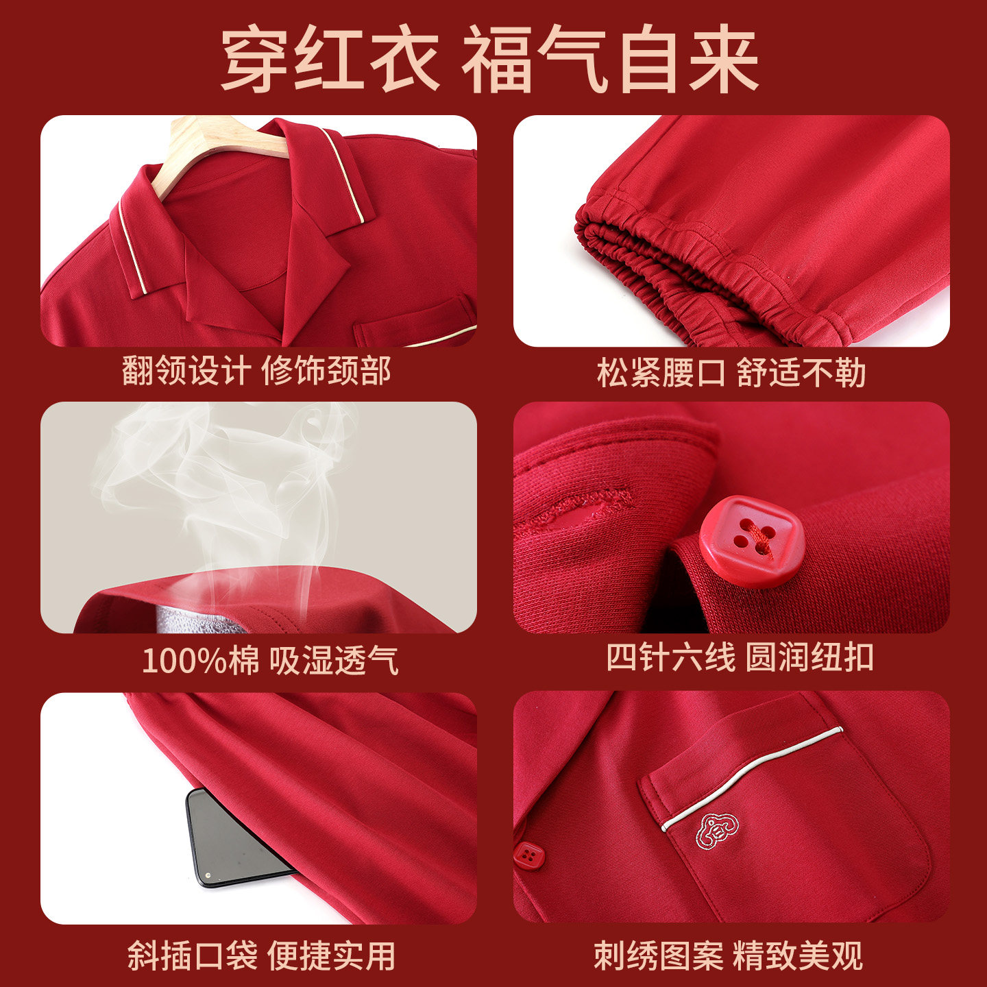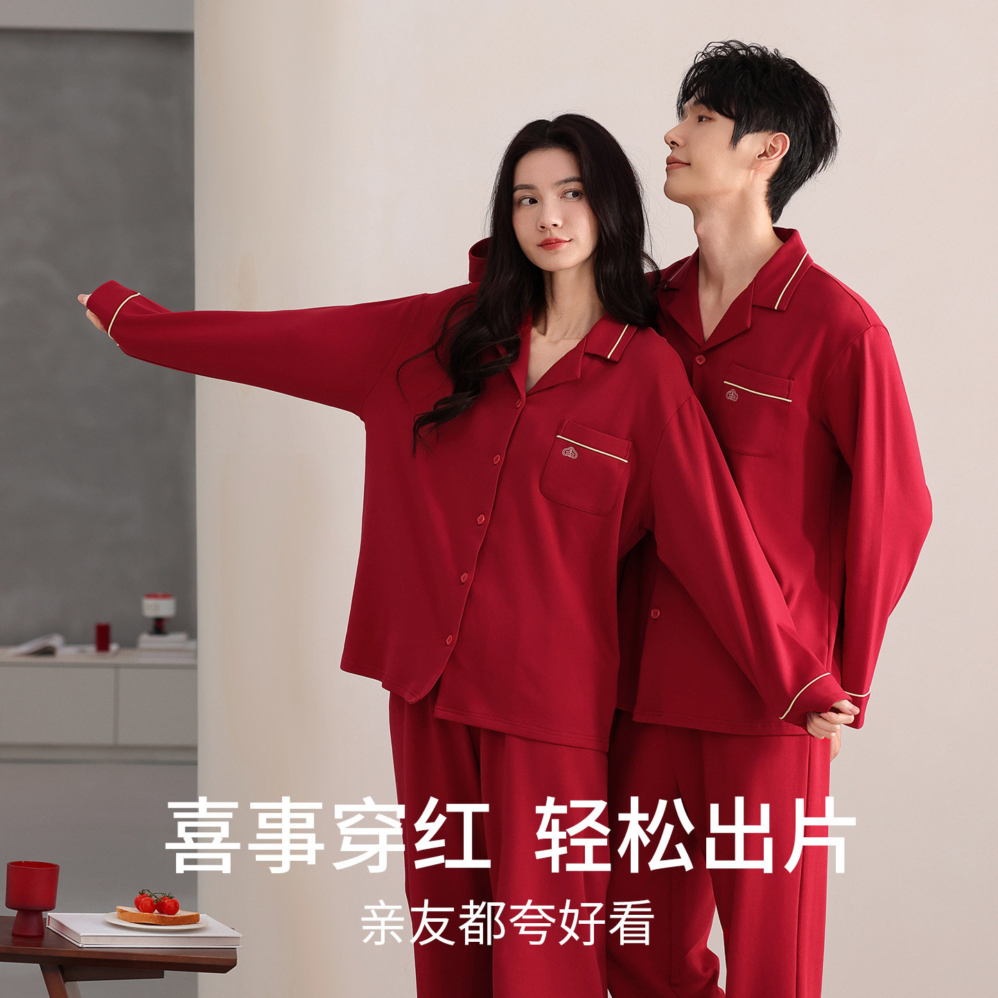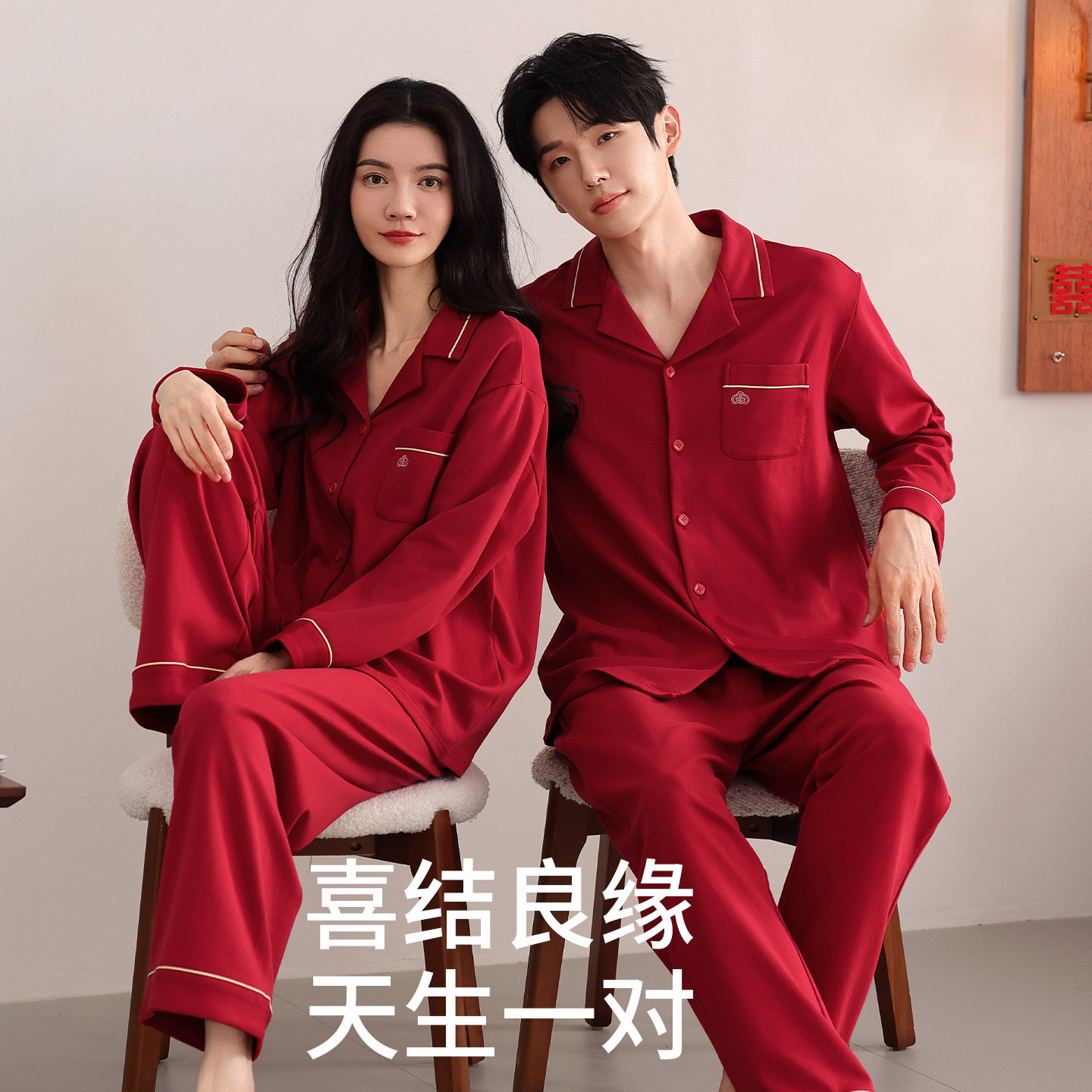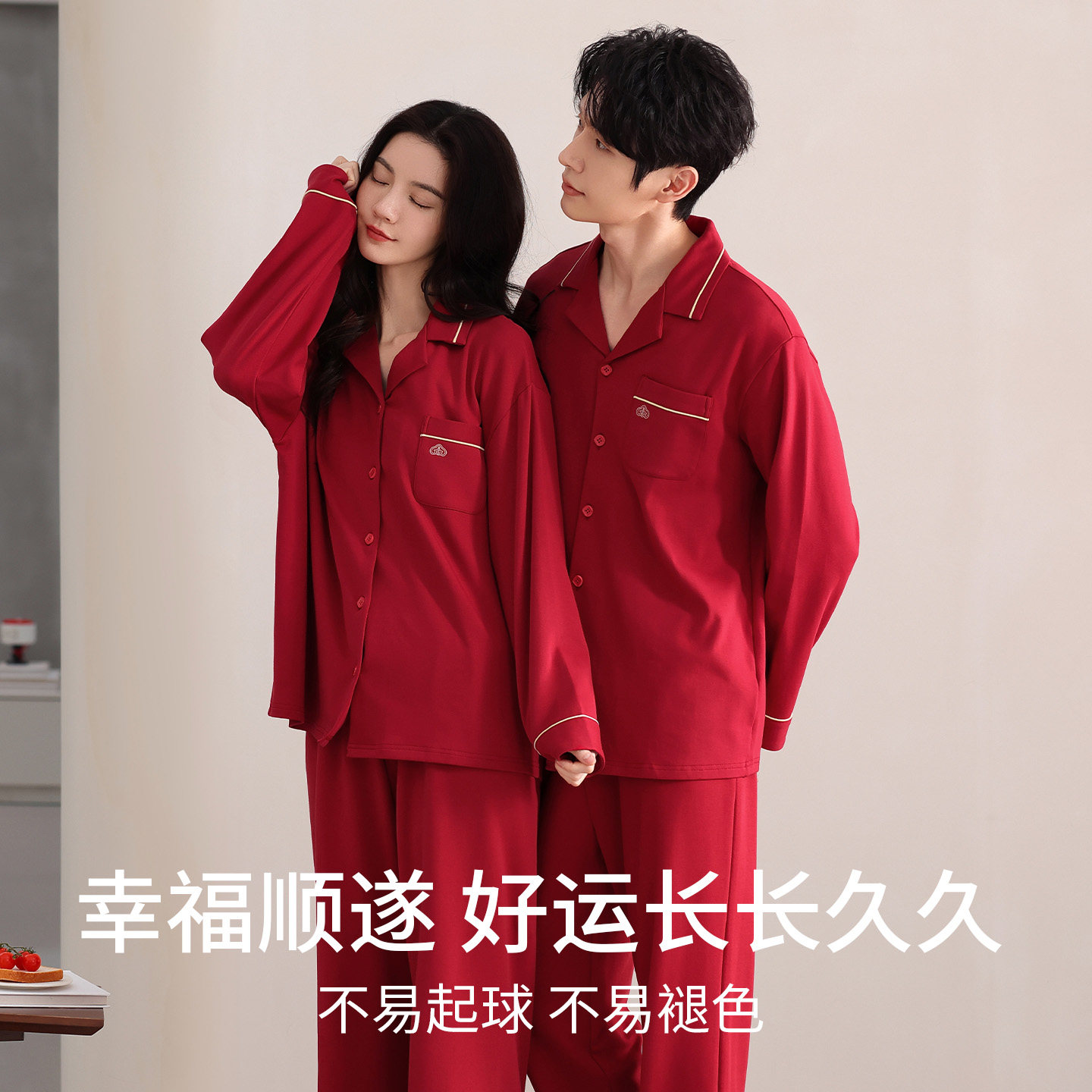 红色本命年男女睡衣结婚新婚情侣喜庆套装秋冬季纯棉长袖家居服