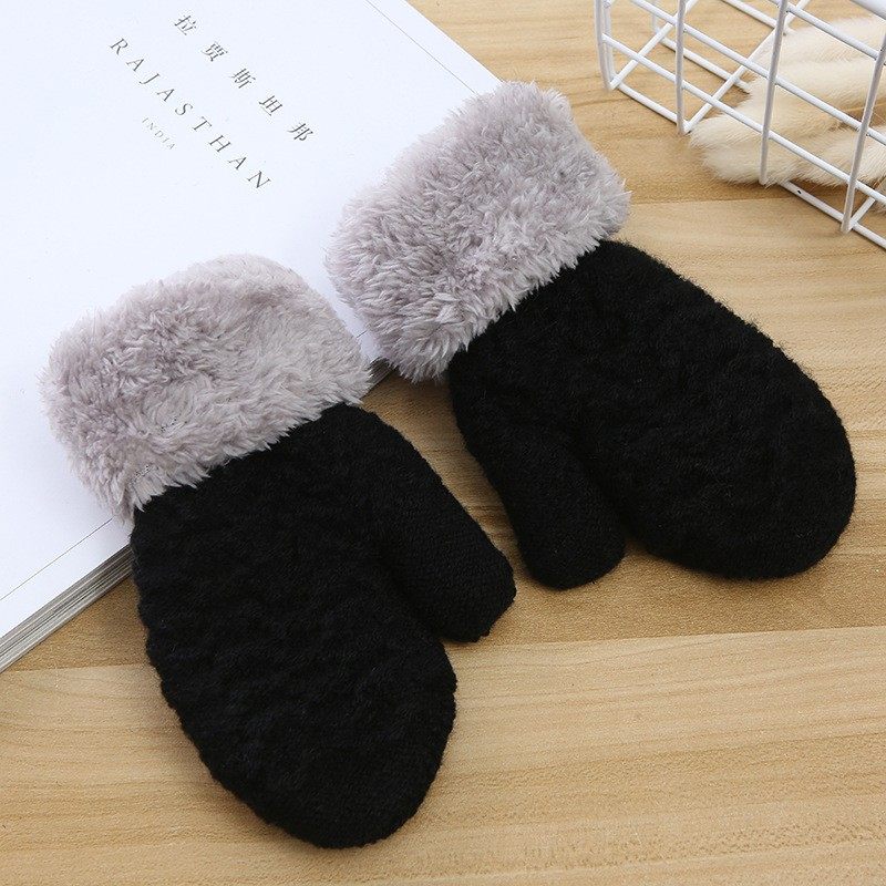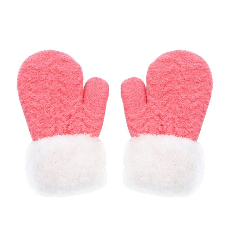 秋冬儿童全包保暖手套防寒针织连指手套毛绒束口内套绒布防风手套