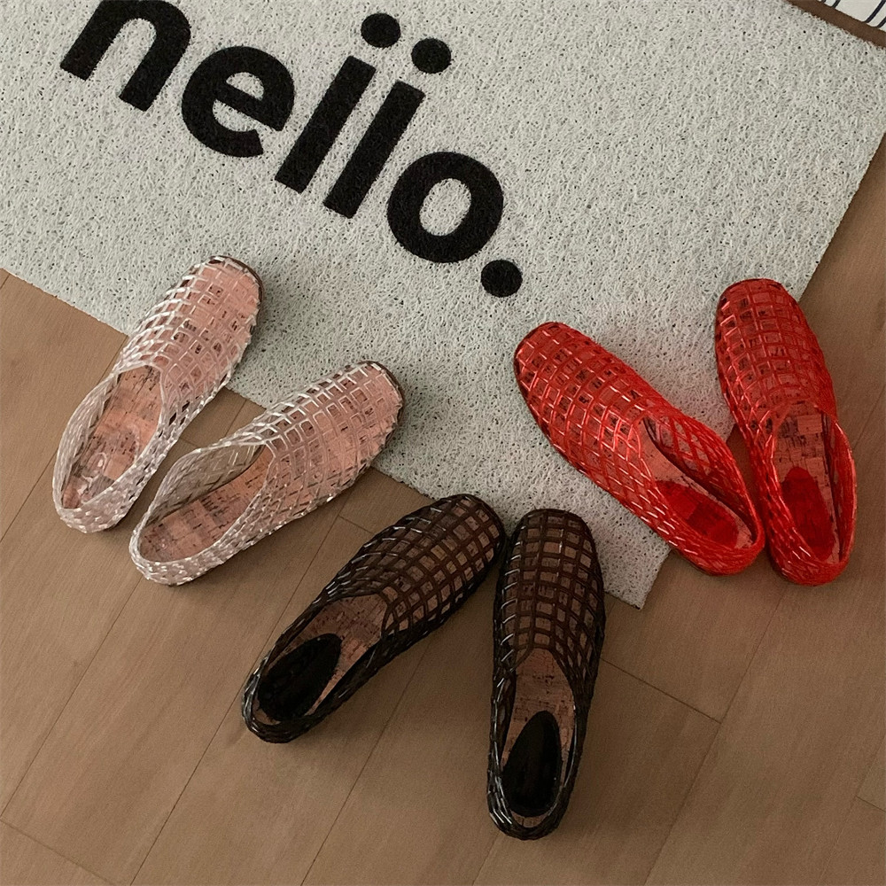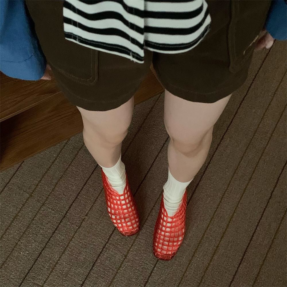 细细条 小众时尚渔网果冻鞋欧美镂空网格软平底沙滩度假浅口单鞋