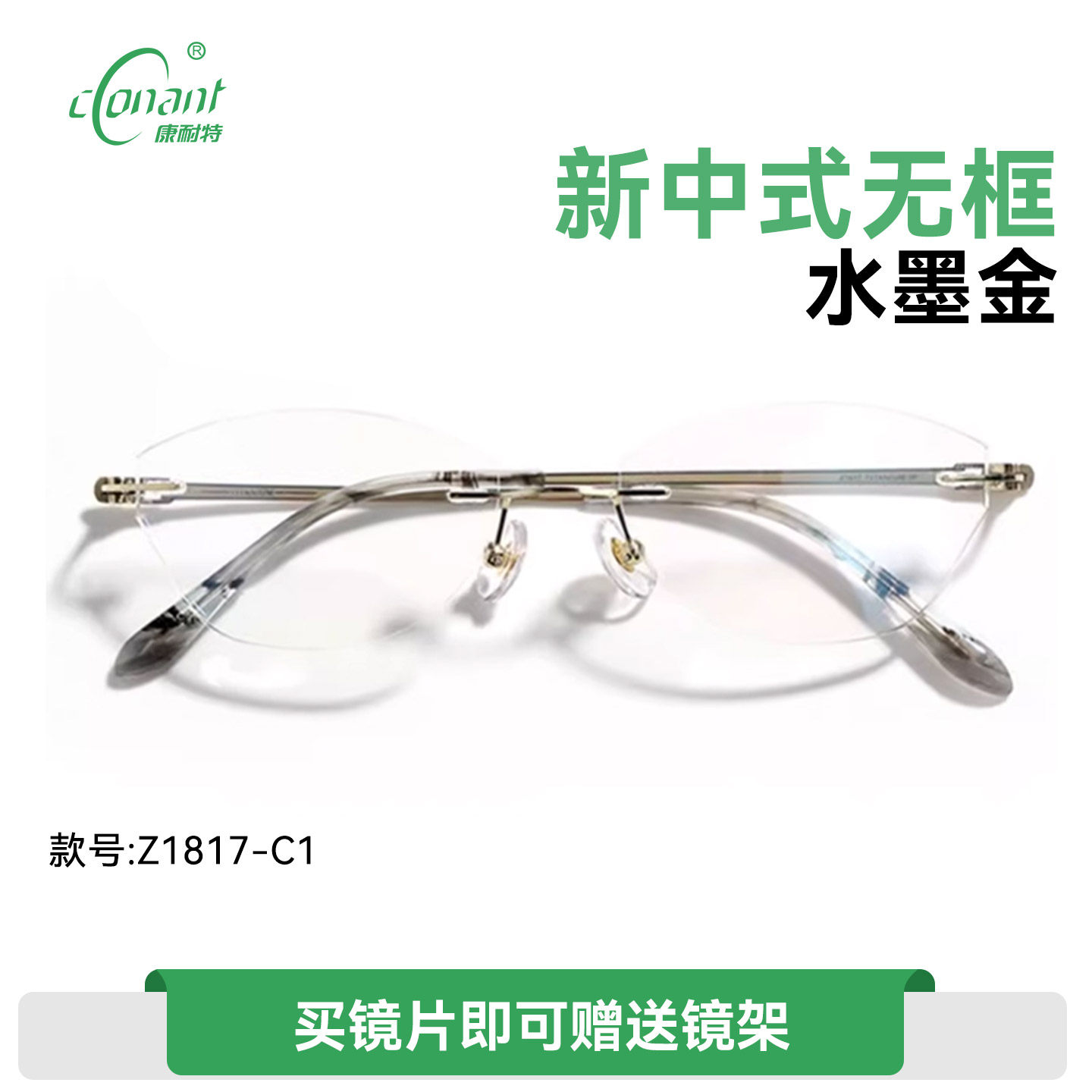 康耐特女款无框近视眼镜金玉桃花酿镜框可配度数颜值出行神器